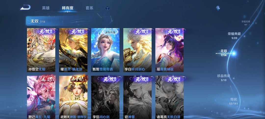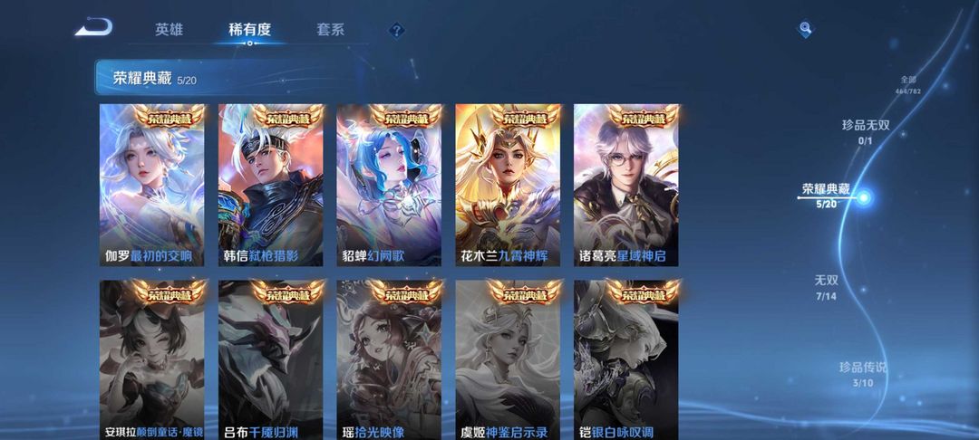 出租王者V10 六典藏:✨花木兰九霄神辉✨韩信弑枪猎影✨貂蝉幻阙歌✨李白鸣剑曳影✨诸葛亮星域神启✨武则天 五无双:瑶真我赫兹✨甄姬雪境奇遇✨李白碎月剑心✨妲己青丘九尾✨武则天神器明辉仪) 传说限定:裴擒虎赤拳/孙尚香问璇玑/赵云铭钟鼎/孙策淬吴钩/鲁班时之奇旅/关羽武圣/夏洛特浮生妄/项羽无限倾心/李信炽霜斩/杨戬永曜之星/小乔琳琅生/孙悟空齐天大圣/曜苍雷引/孙尚香异界灵契/不知火舞绯月行/王昭君星穹之声/吕布天魔缭乱/橘右京风霜尽/娜可露露前尘境/马可波罗深海之息/后羿无尽星芒/ 传说:澜逐花归海/刘备时之恋人/金仲夏夜之梦/超时空战士/无双飞将/一念神魔… 限定史诗:黄忠烈魂/纯爱花嫁/真爱至上/冰霜神祇/朱雀志/冰封战神/傲雪梅枪……