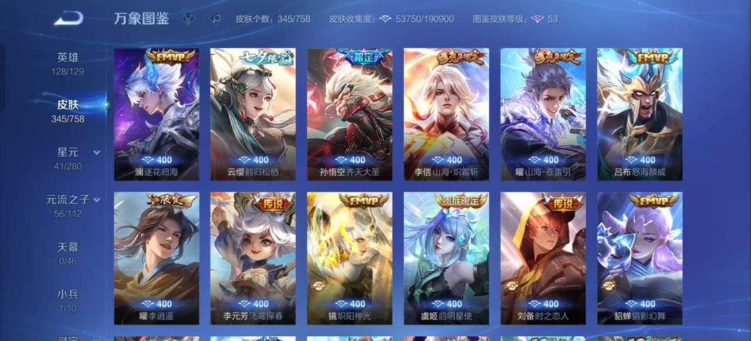 本游戏账号: ,英雄多,皮肤多。典藏皮肤2个,感受典藏皮肤带来的优质体验快感,FMVP皮肤5个,尽情享受FMVP皮肤带来的主角光环, 私人所属英雄皮肤有:花木兰 九霄神辉||铠 银白咏叹调梦奇 胖达荣荣||李信 山海·炽霜斩||妲己 愿照·众生和||孙悟空 齐天大圣||李元芳 飞鸢探春||桑启 鸣野蒿||虞姬 云霓雀翎||虞姬 启明星使||澜 愿照·九州拓||曜 李逍遥||曜 山海·苍雷引||云缨 鹤归松栖||云缨 幻光神枪,等等