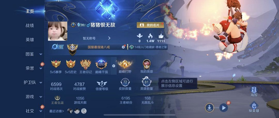 大国标猪八戒小国铠在榜⭐巅峰打野万强对抗千强双闪电框⭐可排位/禁巅峰/禁挂机