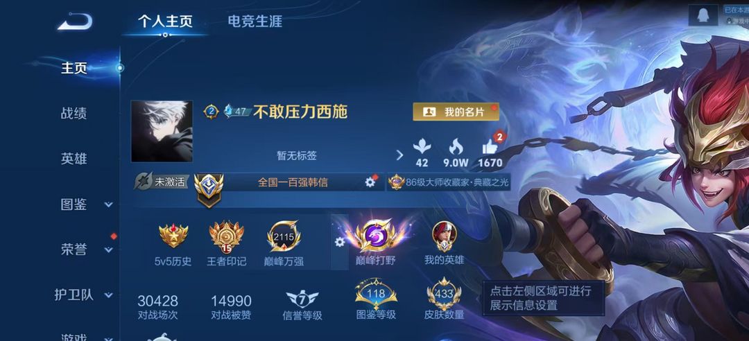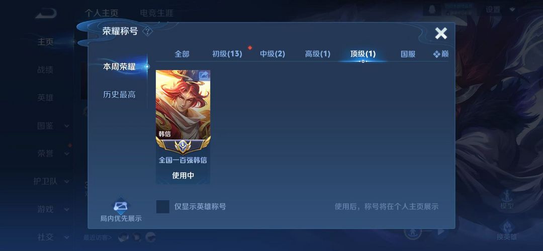 本周省标韩信在榜,本周全国巅峰万强打野称号(禁玩巅峰赛)➕韩信典藏