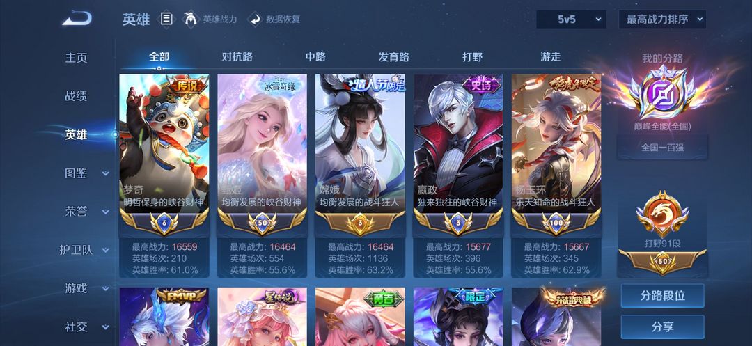 巅峰2500名百强全能省前十嫦娥大乔✨91段野魔方✨巅峰历史两千四-禁止修改游戏id