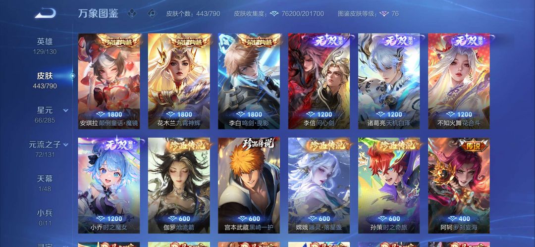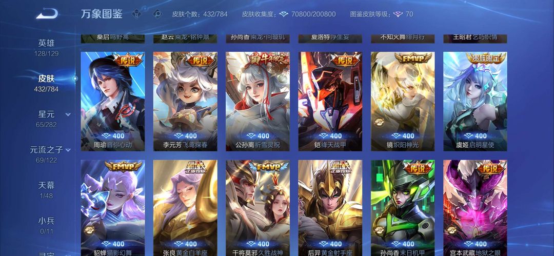 3典藏·4无双·李信无双·安琪拉典藏·蛇年限定全皮·马年限定全皮·诸葛亮无双·火舞无双·小乔无双