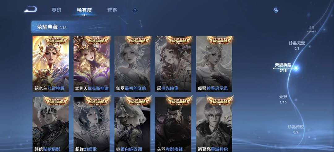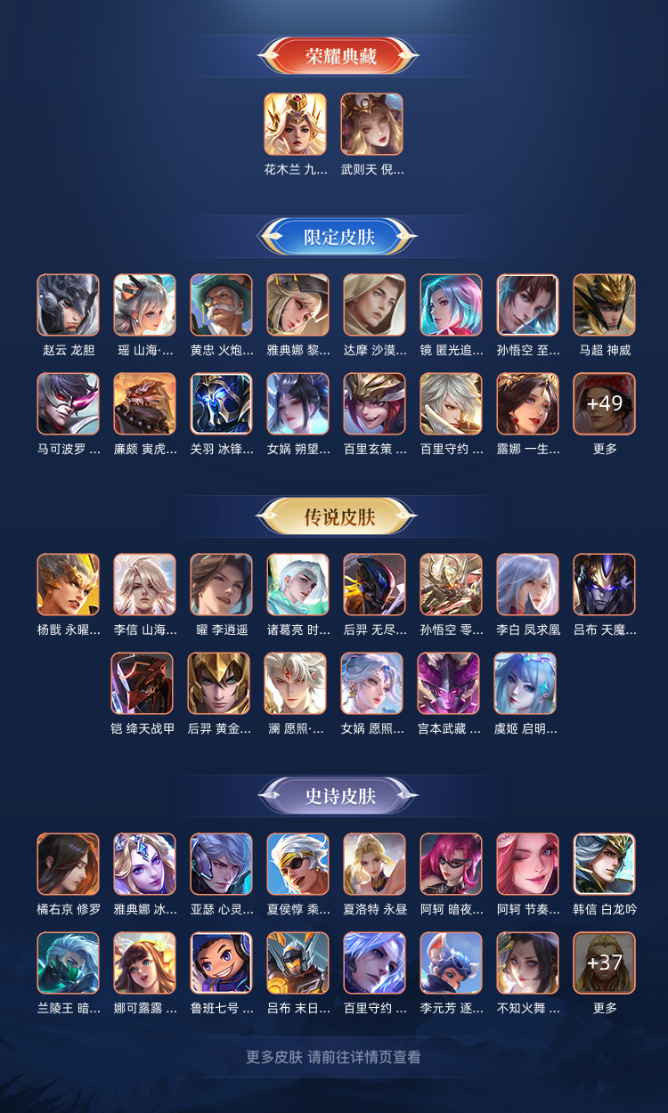 414皮肤有武则天 两典藏一无双 二十三传说 具体皮肤看图 都是高质量皮肤 勿打巅峰赛可以打排位
