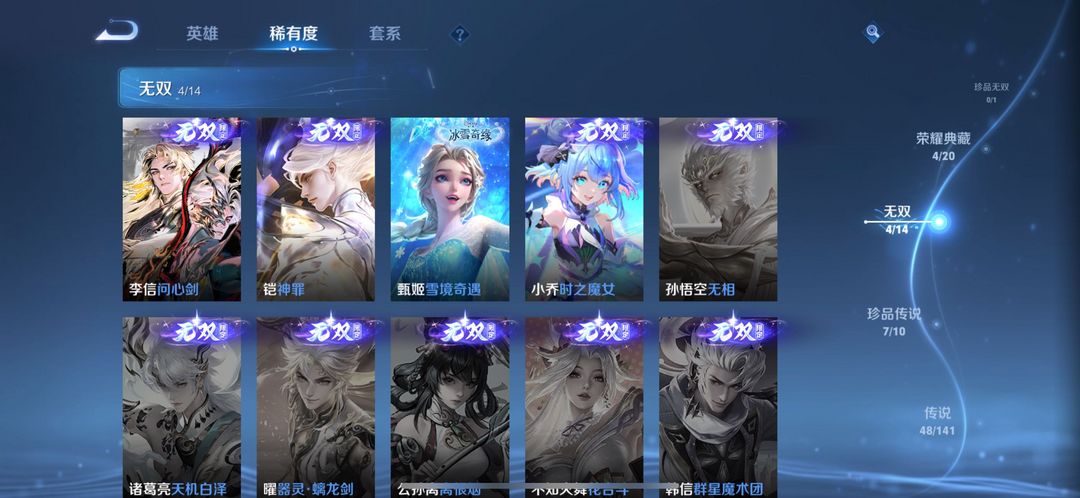 V10 ❤️(马限全)可排位四典藏 铠-李信-新无双皮肤❤️ 4无双 7珍品详情请看图