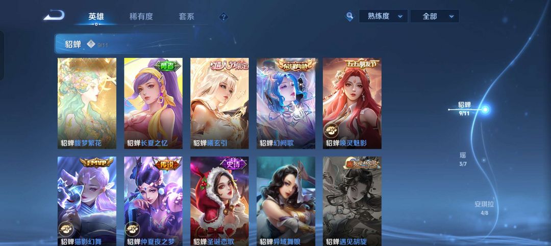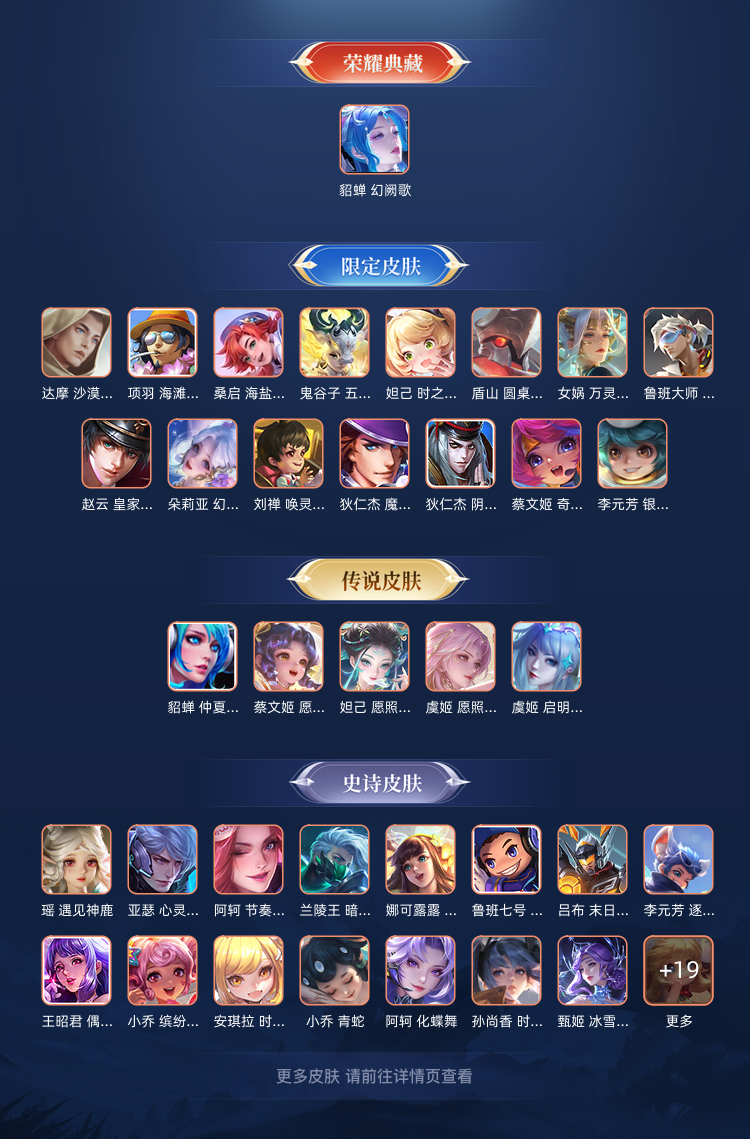 貂蝉馥梦繁花加荣耀典藏加三传说皮两史诗皮,狐妖小红娘系列全套,三丽鸥珍品传说两,蛇年限定皮肤三