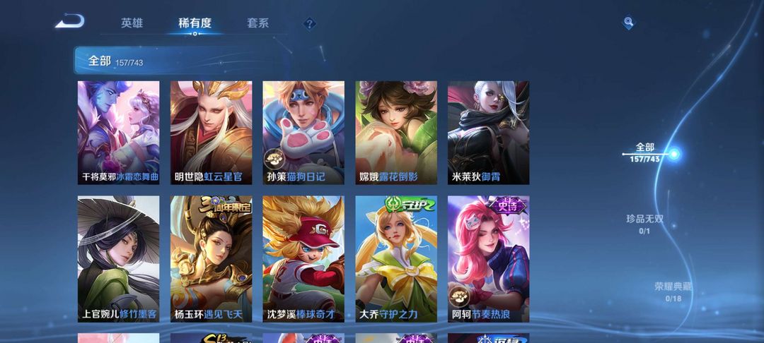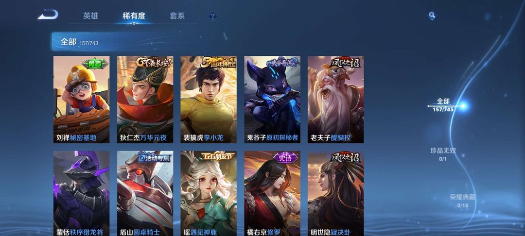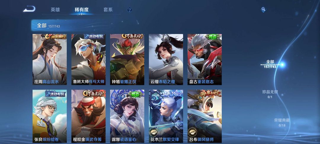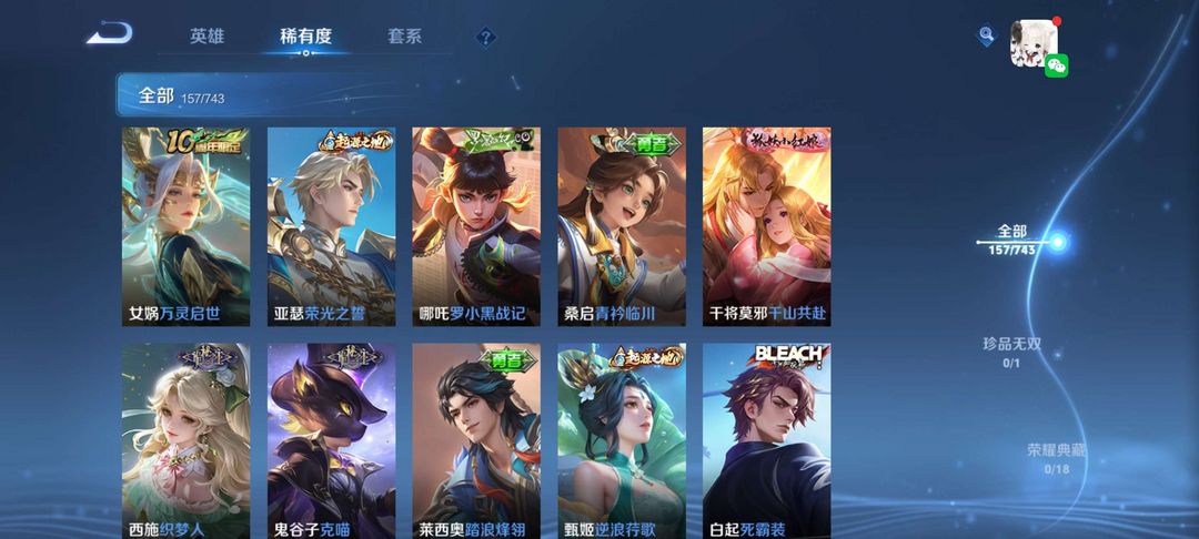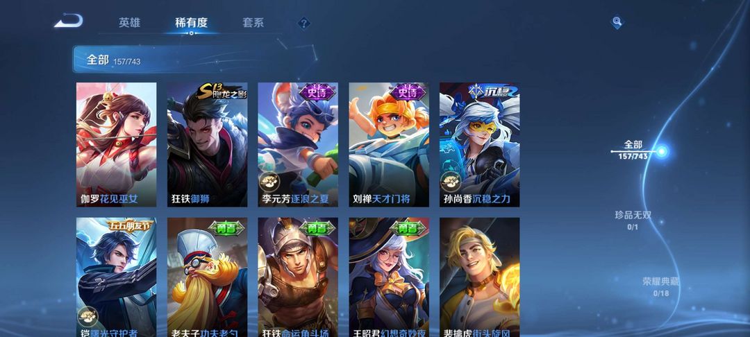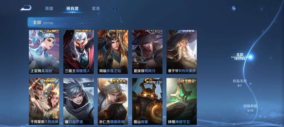 王者荣耀v7 多稀有皮肤 段位较高信誉良好