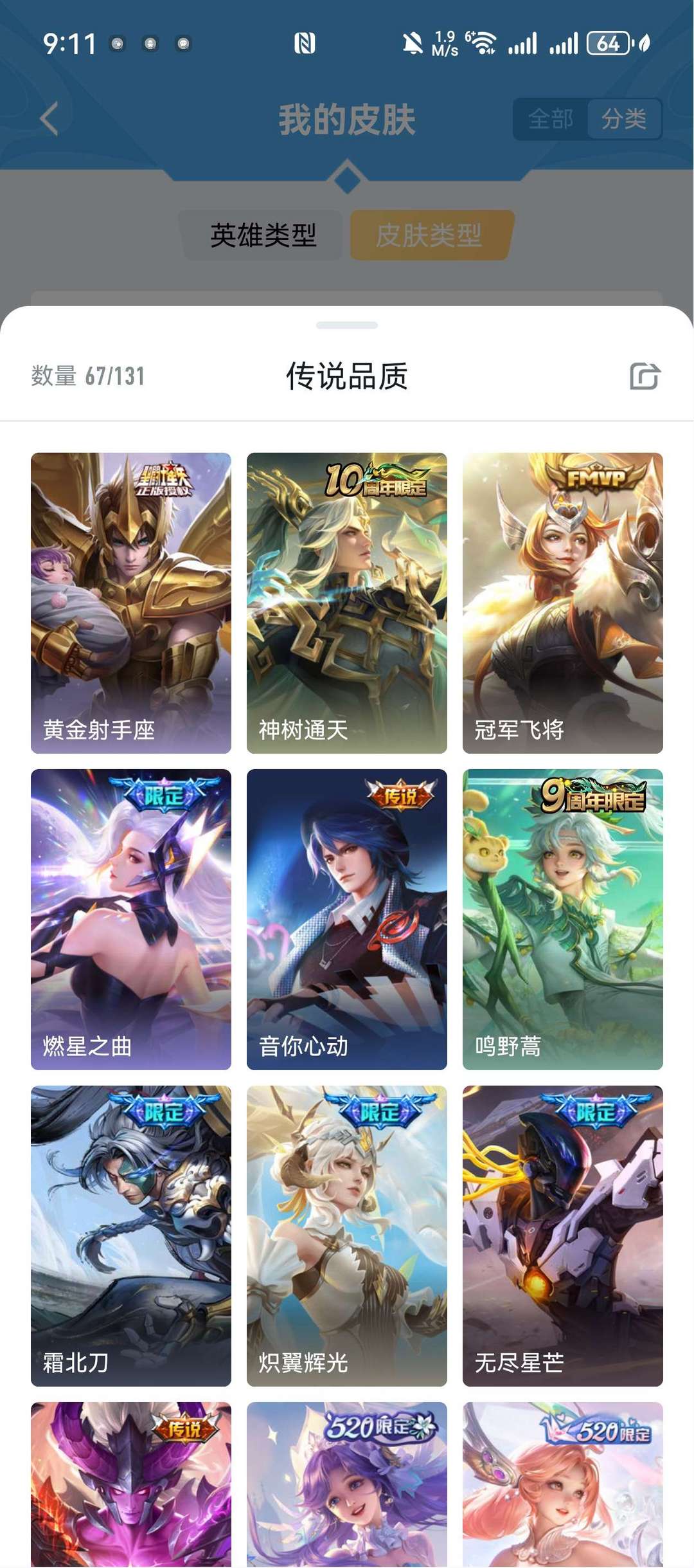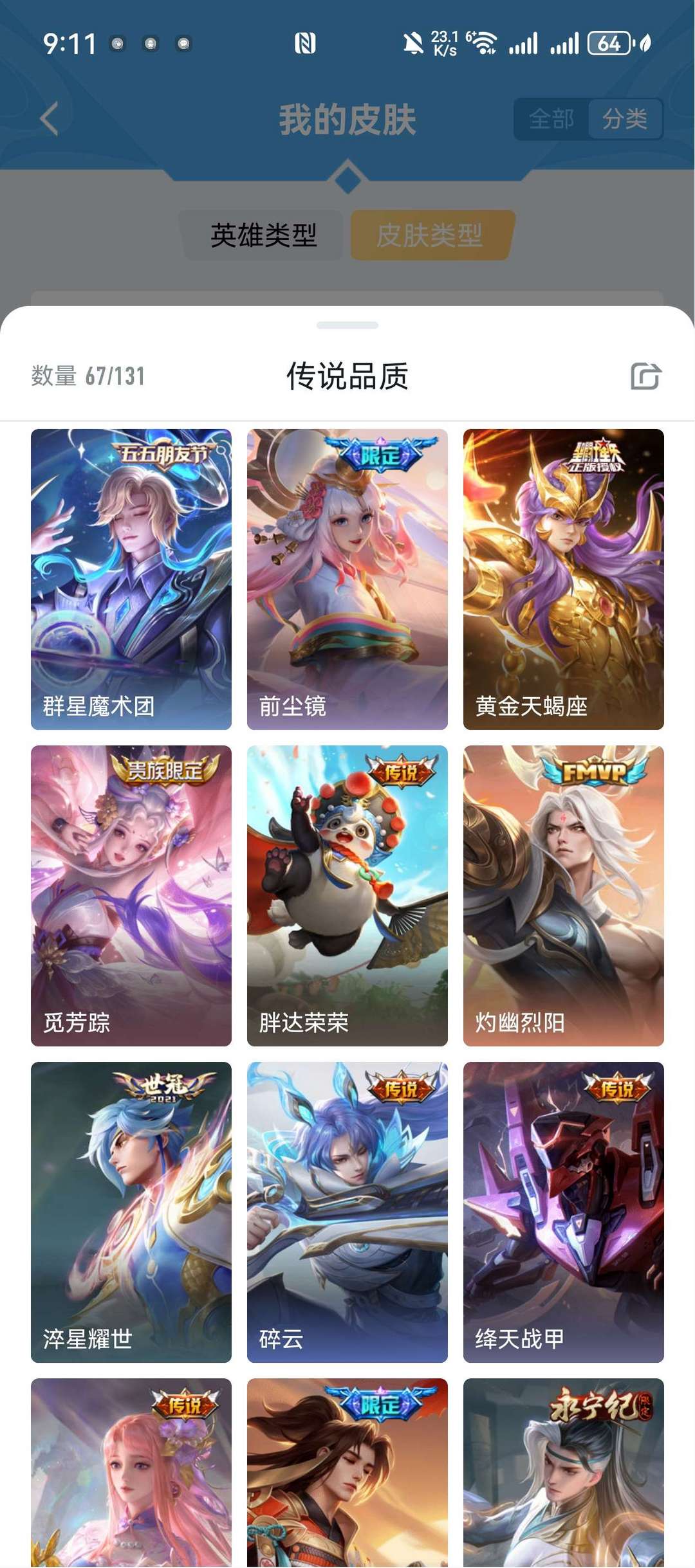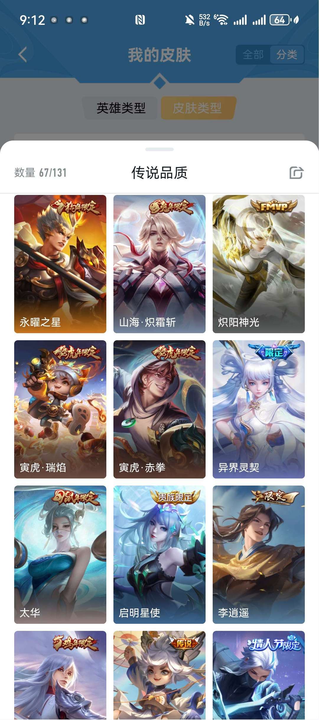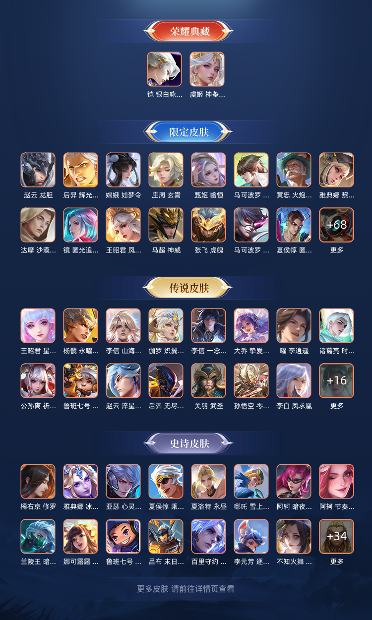 珍品传说2 无双4 典藏2 传说66 史诗173 限定220 英雄128 皮肤512