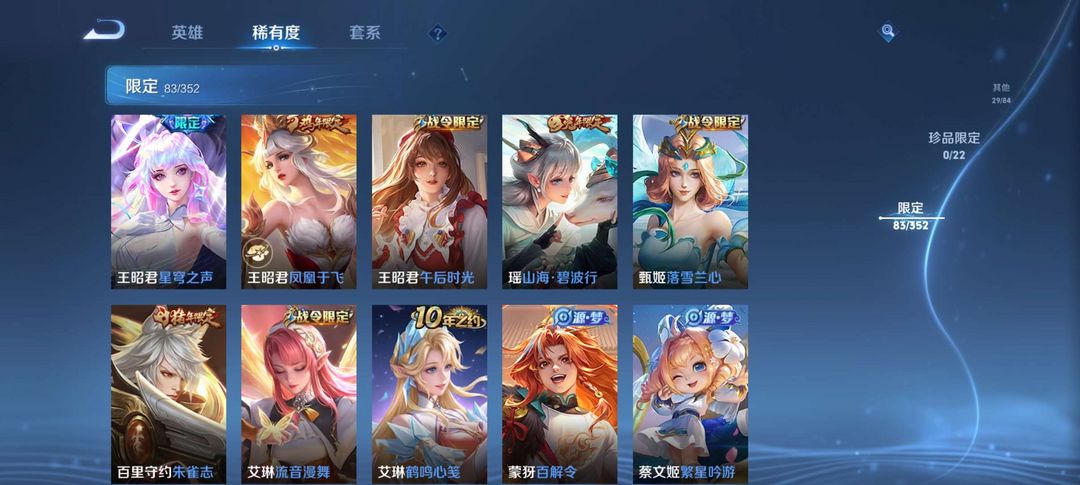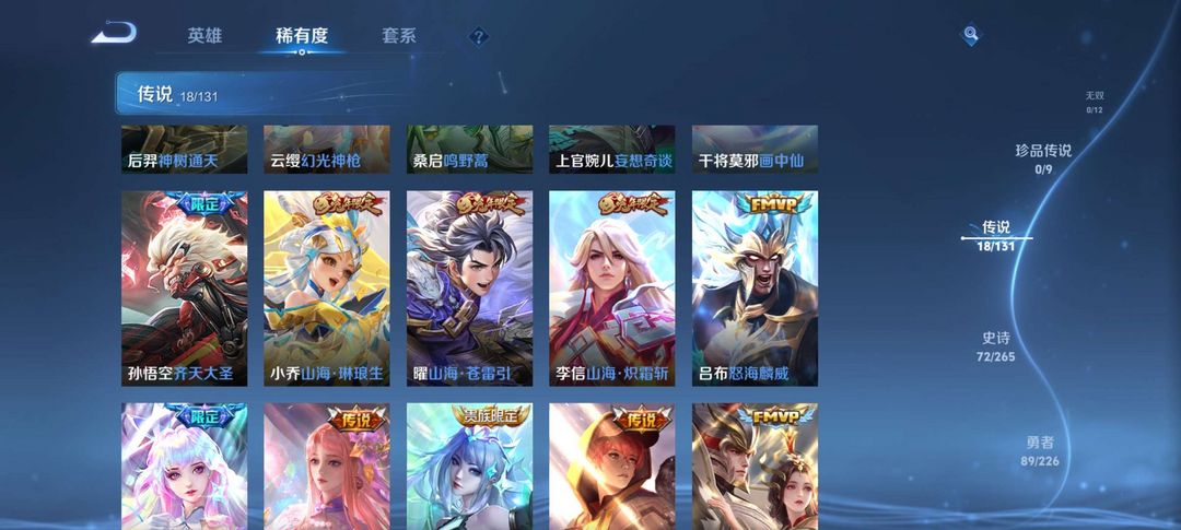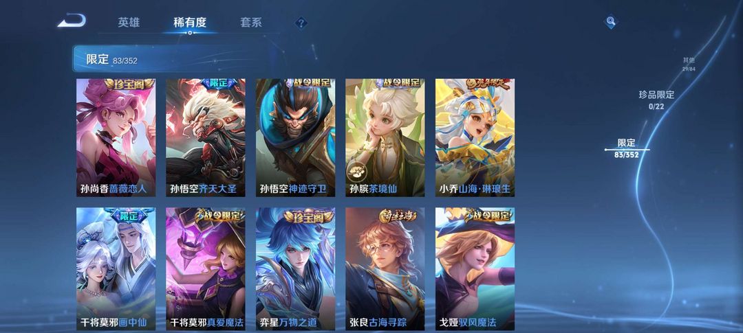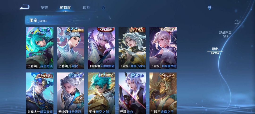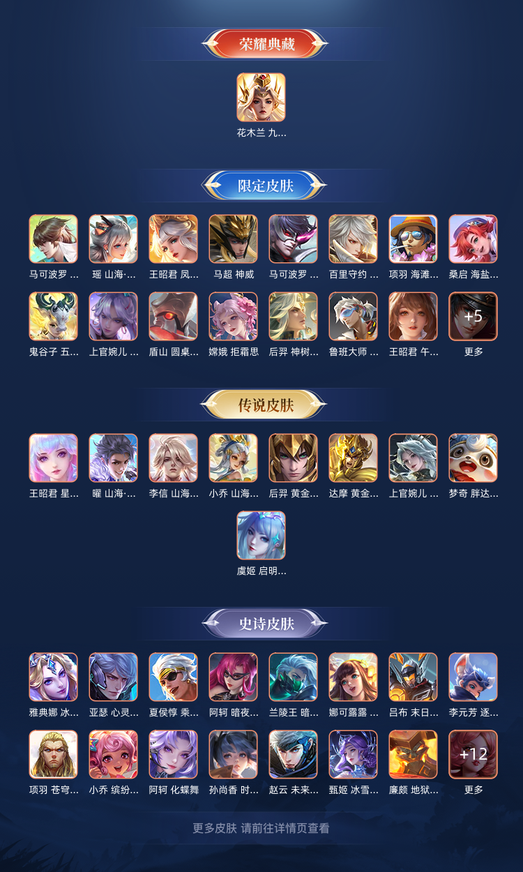 低段位虐菜号未禁言,花木兰典藏皮肤 神威 兔年限定全皮 上官全皮 干将王昭君差几个皮