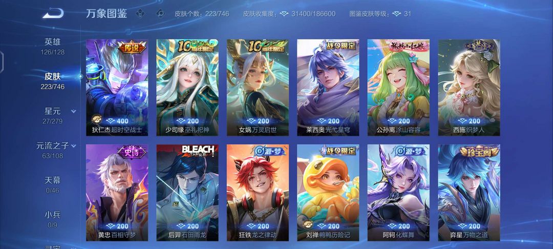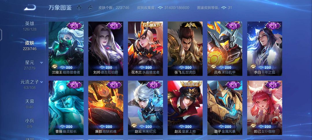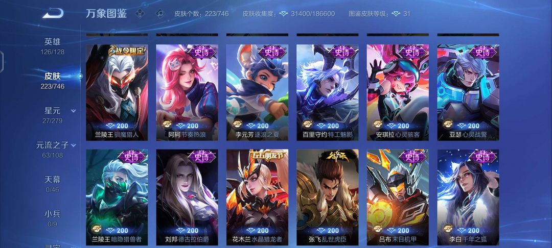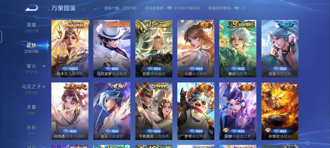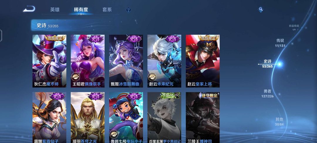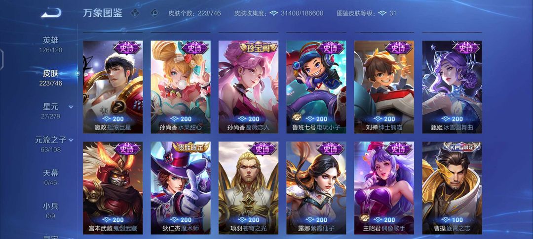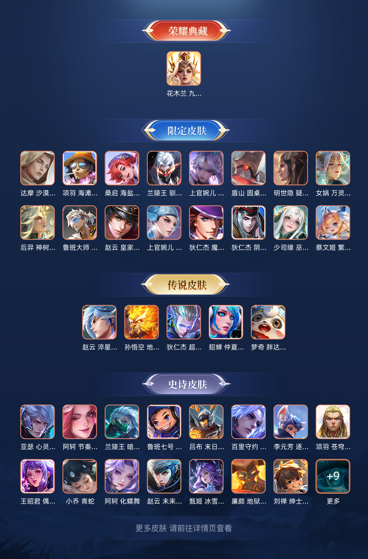 九霄神辉 怪盗基德 皮肤223 英雄125 满级铭文275个 星传说三个具体请看图片哈