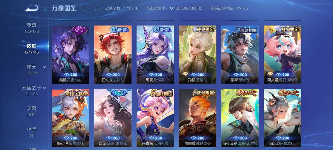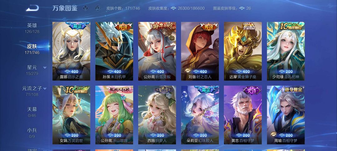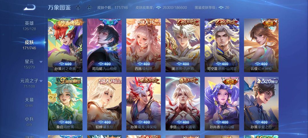 孙策全皮,主打对抗路,大部分传说限定,多抗拒多一点