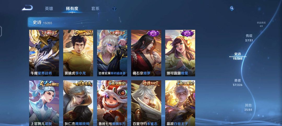 关羽~典藏 守约~朱雀 孙尚香~机甲星元 橘右京修罗 韩信街霸 等等...