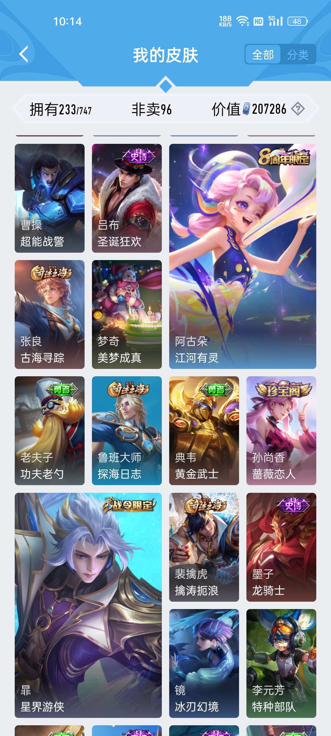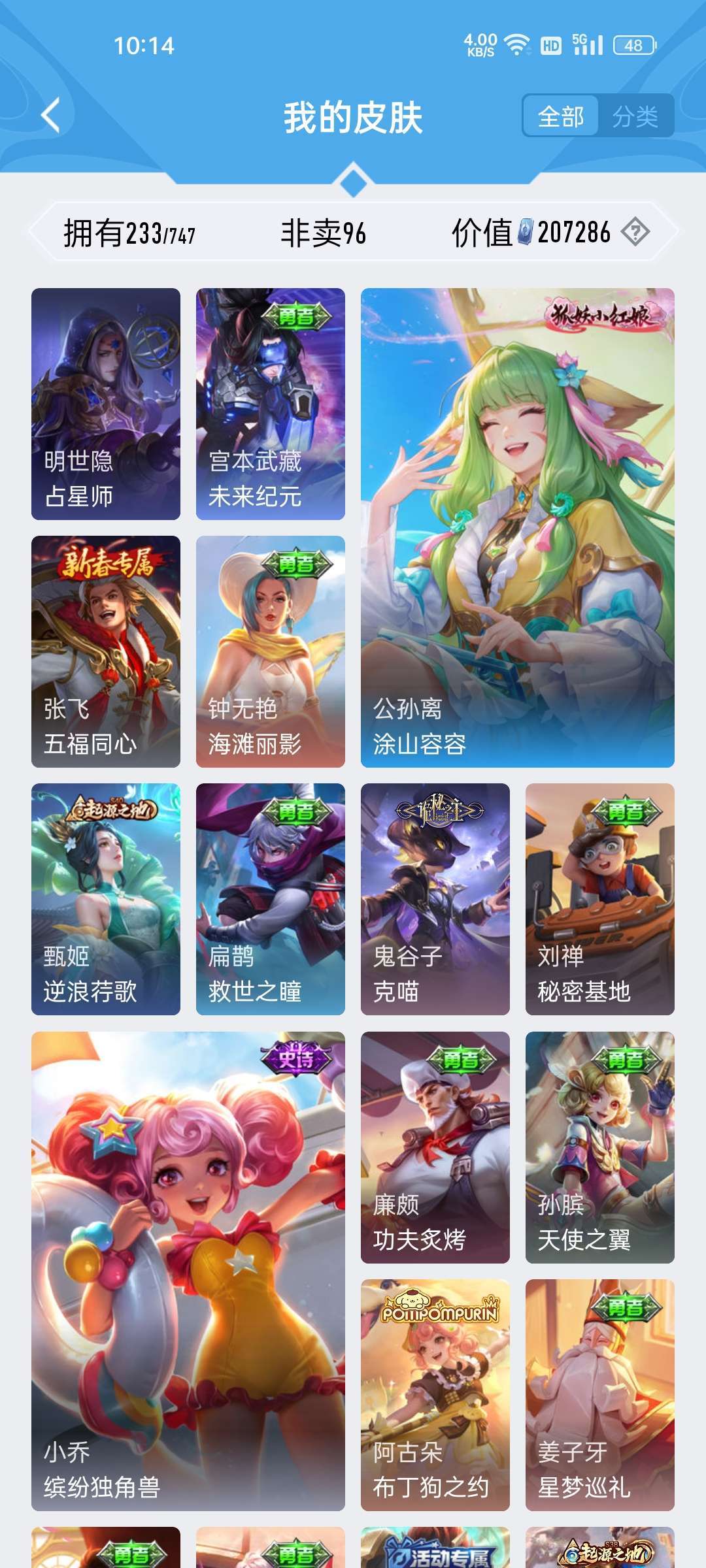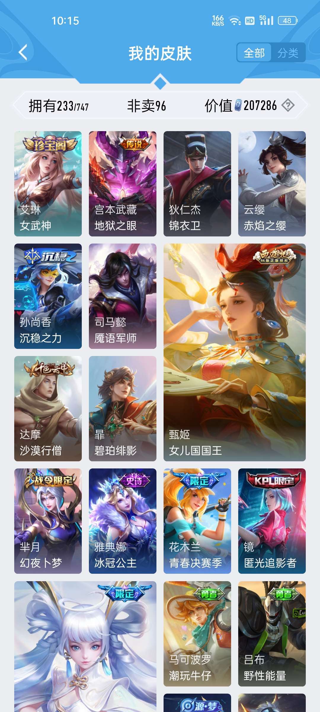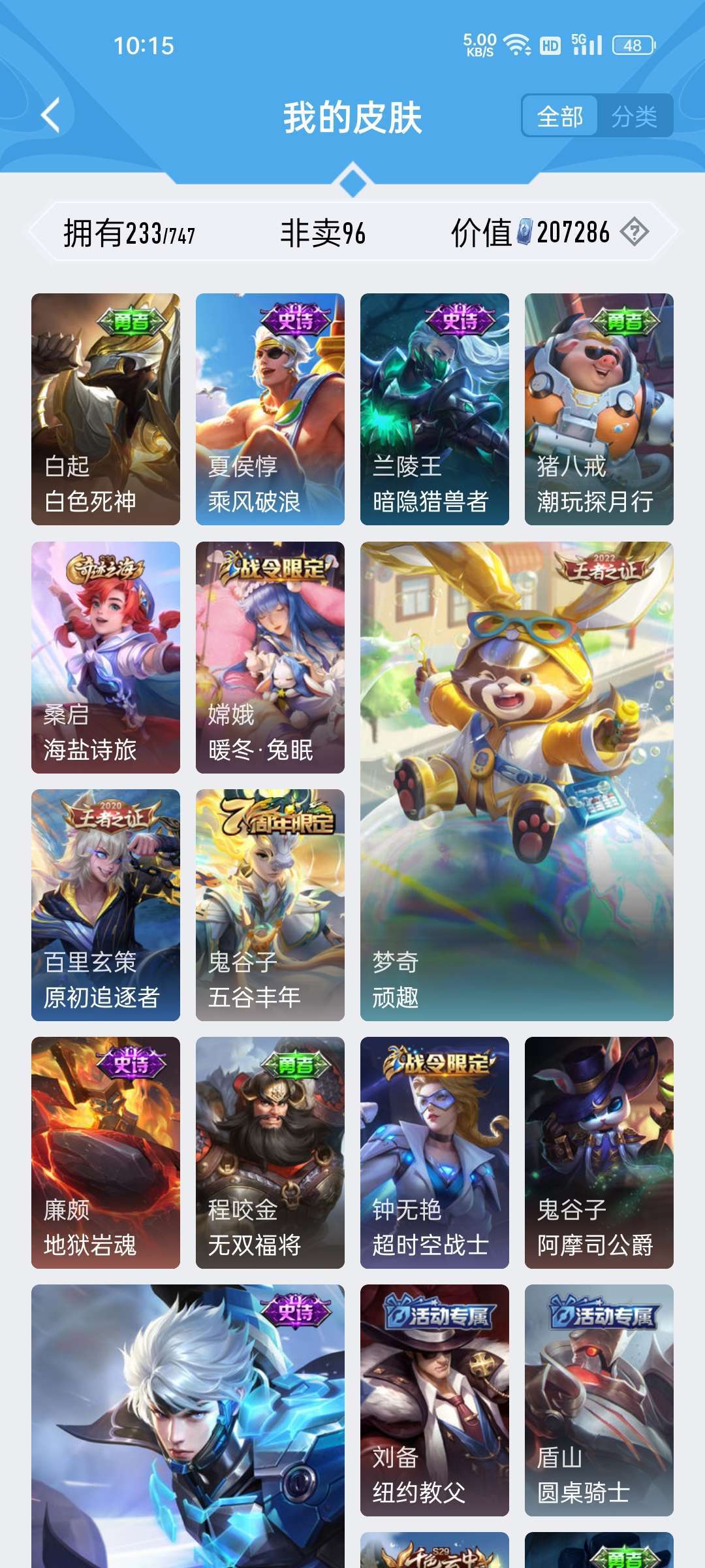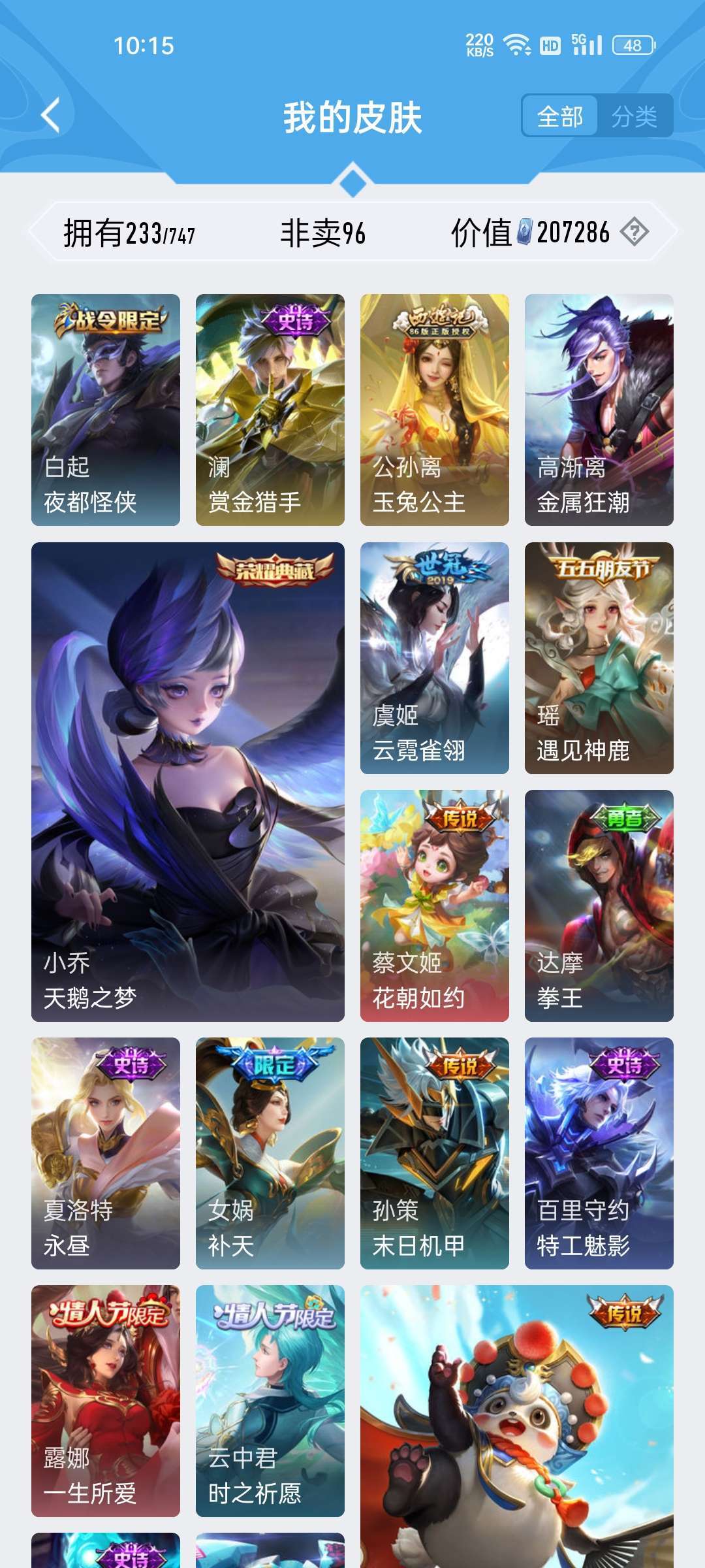 典藏一个其他传说若干每个英雄都有皮肤v9铭文全满各位老板可上号自行查看皮肤发不全,下面图片可供参考