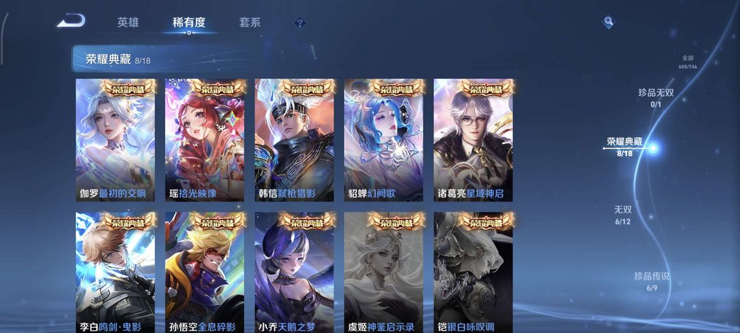 v10+605皮+8典藏+6无双+6珍品传说+9星传说