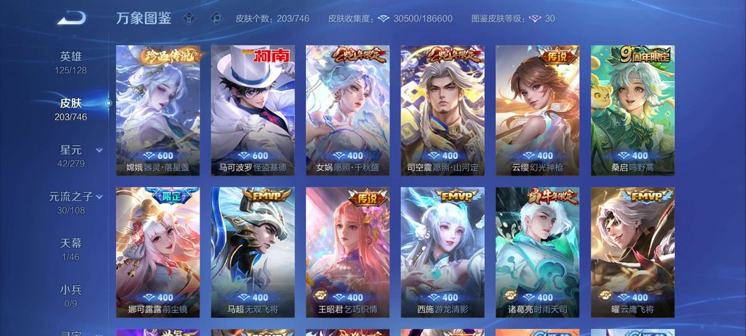 玄策白虎志,马克怪盗,嫦娥珍品,诸葛时雨,关羽冰封,马超fmvp西施fmvp司空震女娲限定可排位
