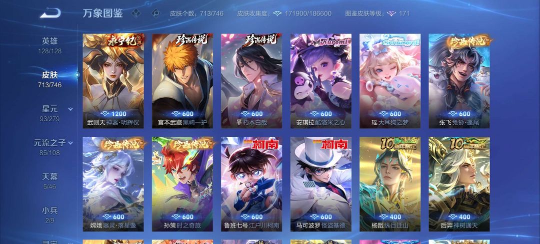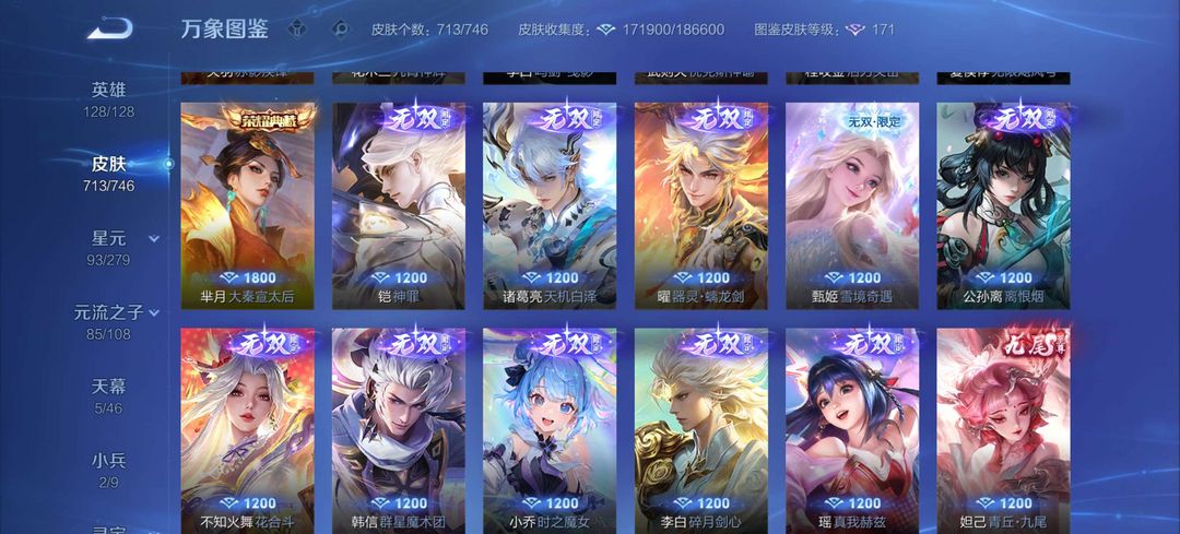 713皮肤 ,12荣耀典藏 ,全无双皮肤