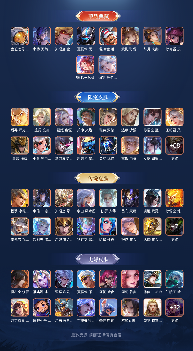 11典藏✨瑶典藏✨伽罗典藏✨历史③金标✨至尊宝✨梅西✨无双飞将✨神威