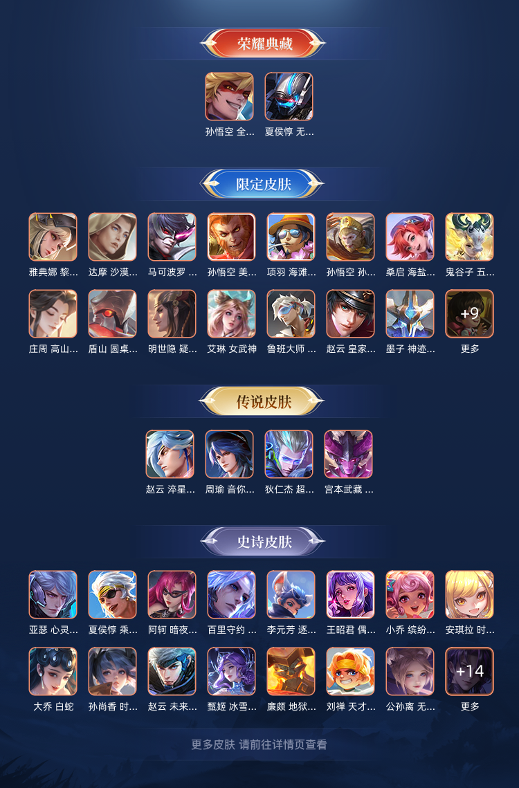 两个荣耀典藏7个传说皮肤64个史诗皮肤