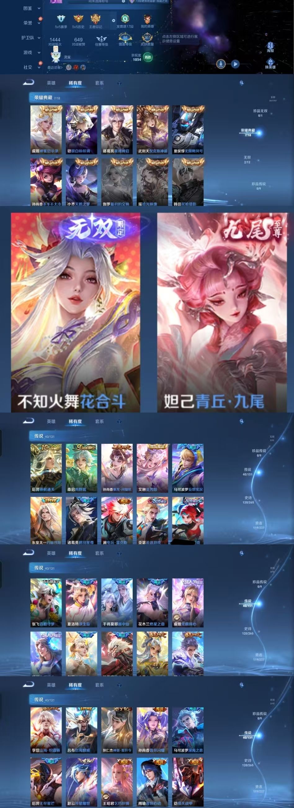 时间到了还登录白玩或者顶号全部改密拉黑处理永不解除,顶号机器会秒禁玩改密,顶号不仅拉黑还没得玩,赚三两块不容易,请理解谢谢。 ❤❤❤❤❤❤❤❤❤❤❤❤❤❤❤❤❤❤❤ 请勿开挂,挂机,送头,骂人,撤单后游戏等如有违规永久拉黑永不解除。 重置二级密码不要费劲了,号主每天都会上号查看,多行不义必自毙,人在做天在看,多做好事多自律,少做缺德事。 该号英雄128个皮肤367个,典藏8个,无双2个,星传说1个,传说40个,史诗120个,祝您游戏愉快~