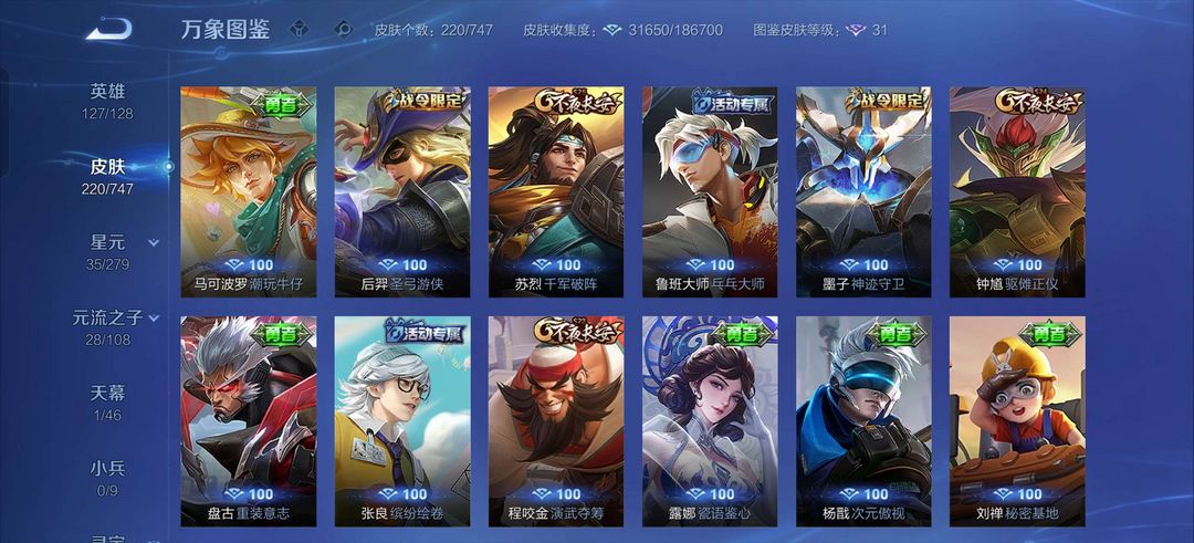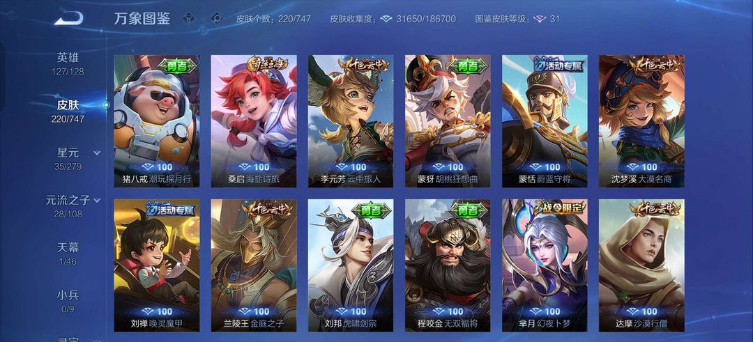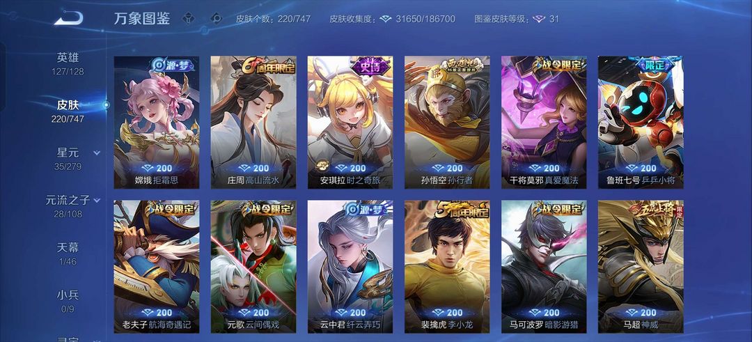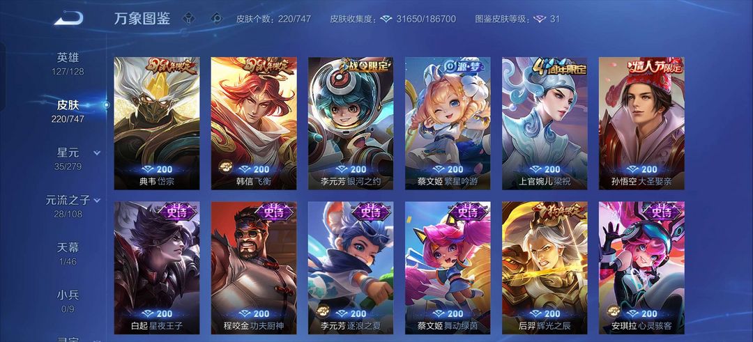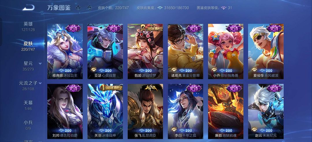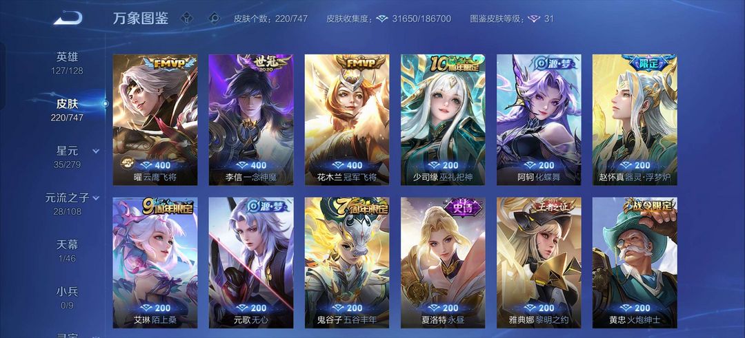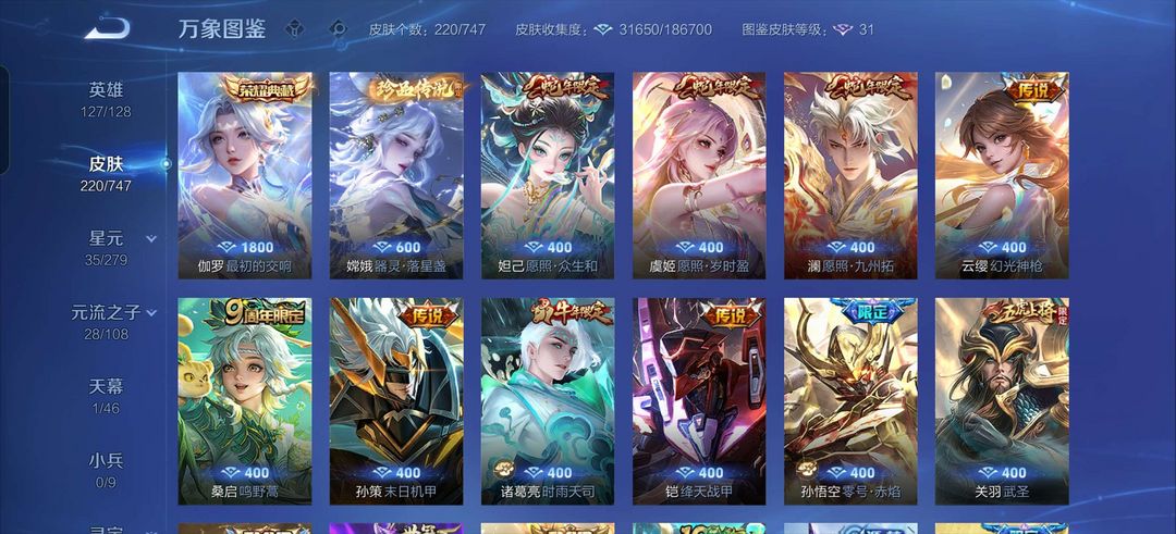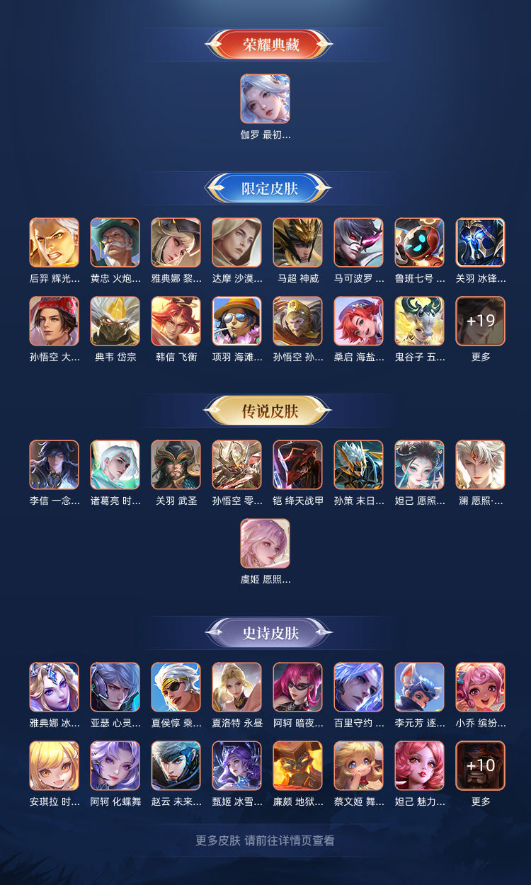 伽罗典藏皮 澜蛇年限定 妲己蛇年限定 虞姬蛇年限定 嫦娥珍品传说……