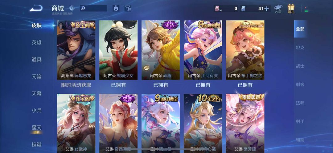 无双V10女号丨全满皮丨满典藏丨满无双丨蛇年限定丨瑶时光映像丨幻阙歌丨紫瑶乞巧织春丨玉鸾吟