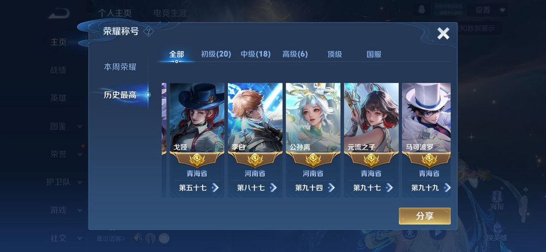 金标苍在榜,巅峰赛1800,荣耀段位,可排位,很多 战力射手,可排位,可打字