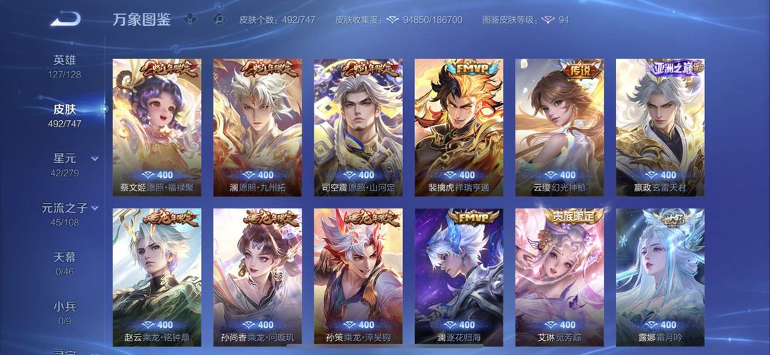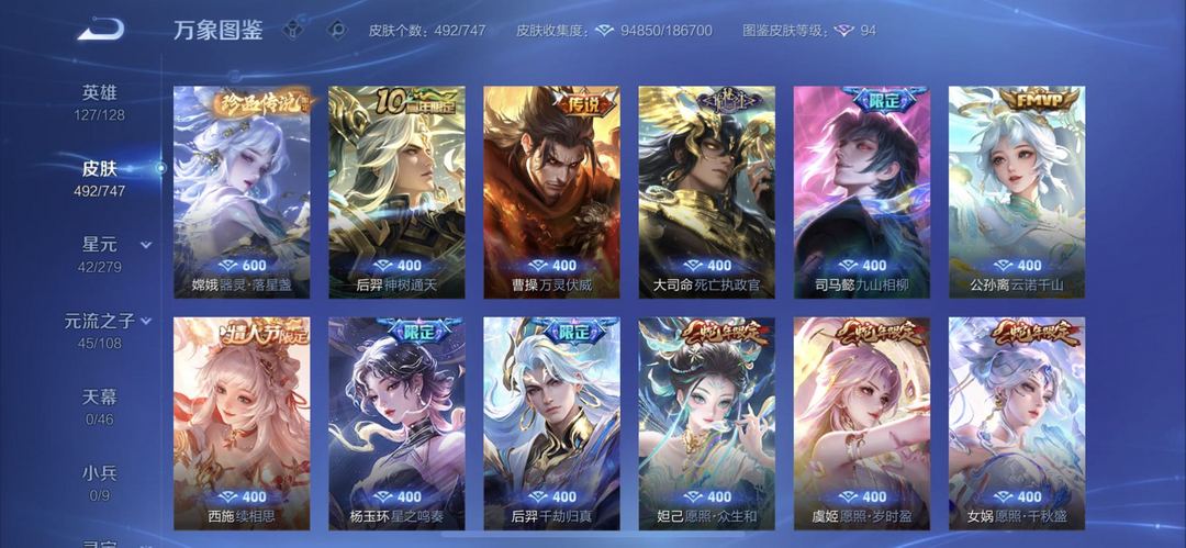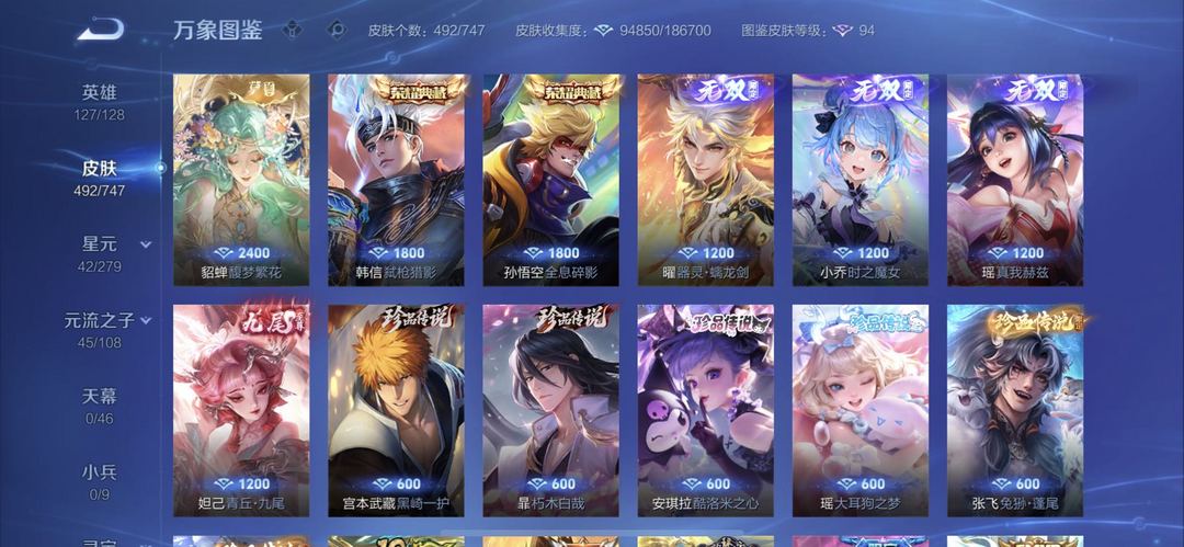女号V10无双贵族貂蝉馥梦繁花蛇年全套无双螭龙剑时之魔女瑶真我妲己青丘无双大耳狗宫本嫦娥器灵至尊宝