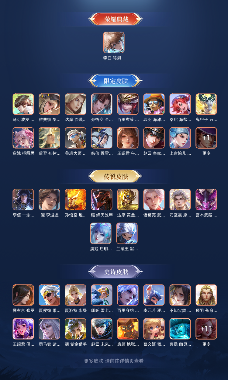 一个典藏皮肤鸣剑曳影两个金标白虎志带妹的皮肤应有尽有