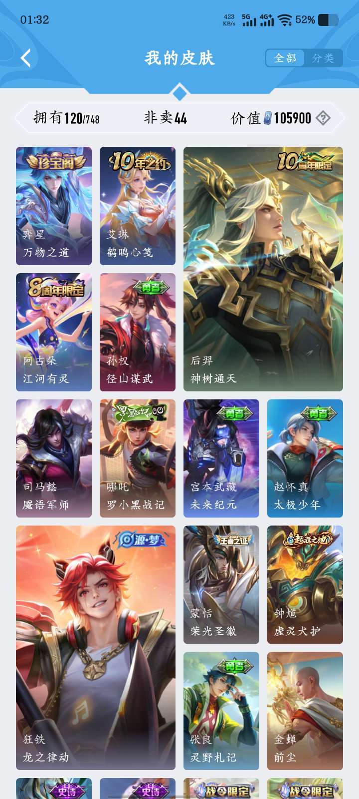 多无双多高质量皮肤,多热门皮肤,历史高胜率高评分