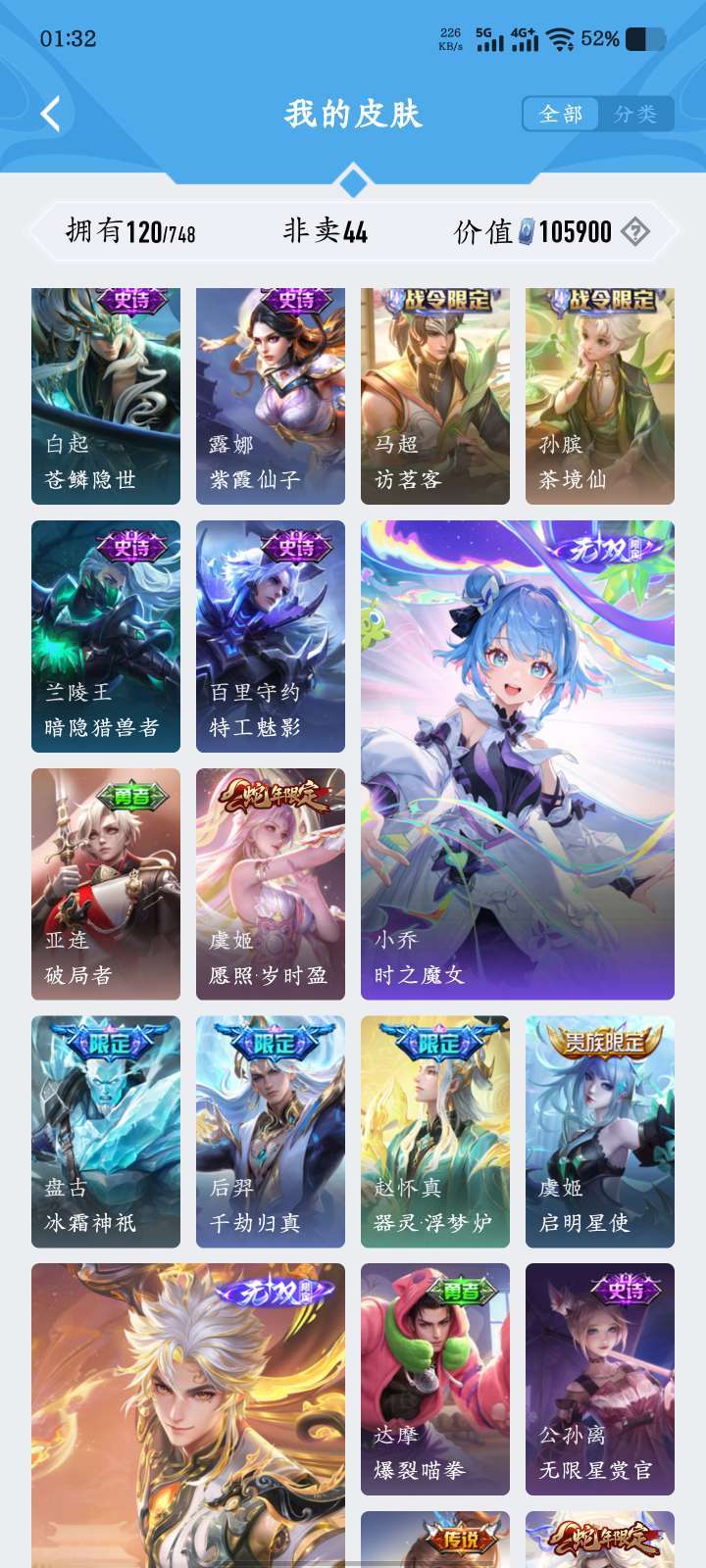 对抗打野皮肤多,高质量皮肤多,高胜率高评分,多网恋男神皮肤,英雄多,满铭文 禁止利用账号进行开挂、使用辅助违规软件诈骗等违规操作。喜欢本账号请点 ☆收藏☆ 方便下次租用