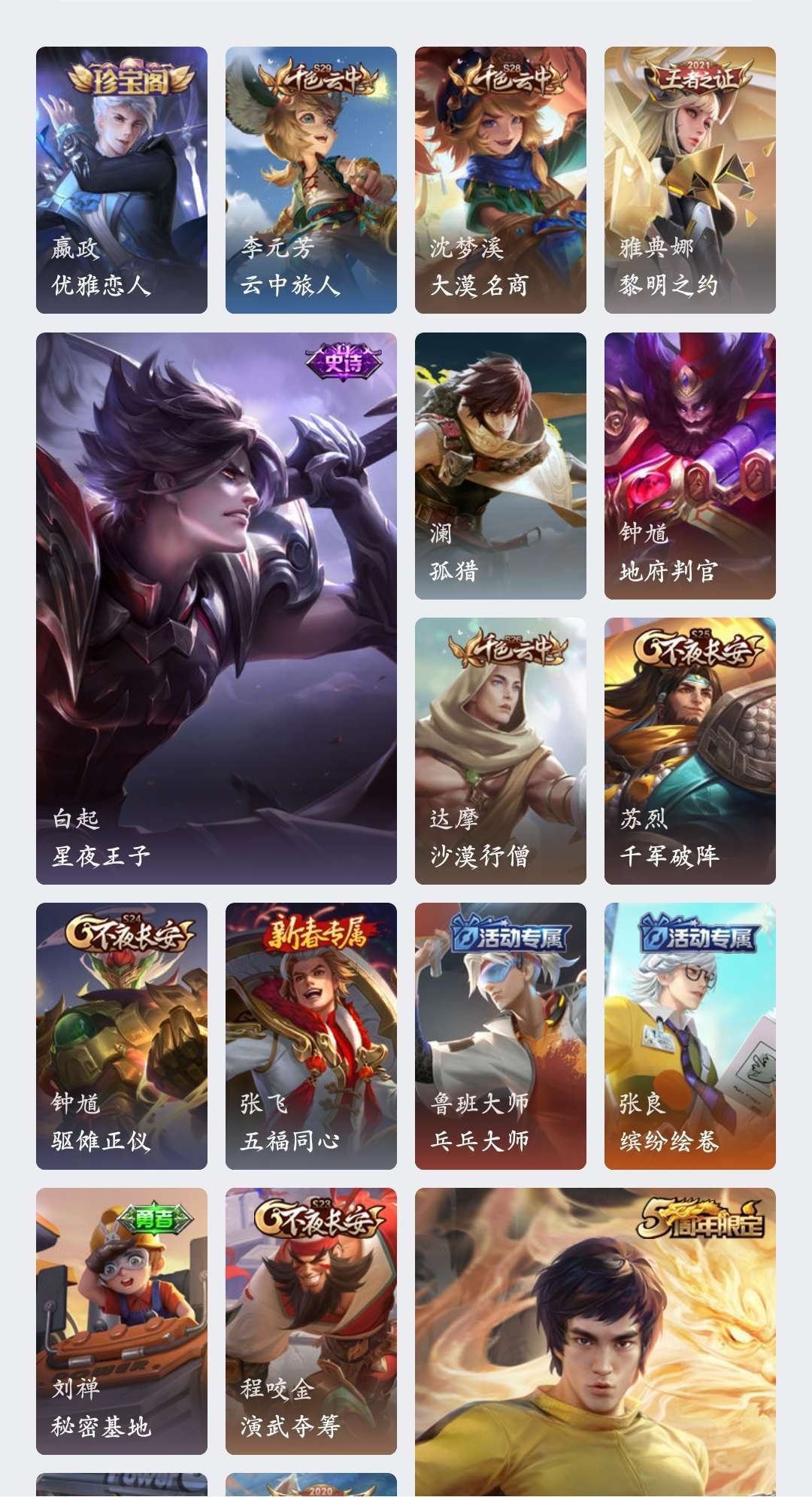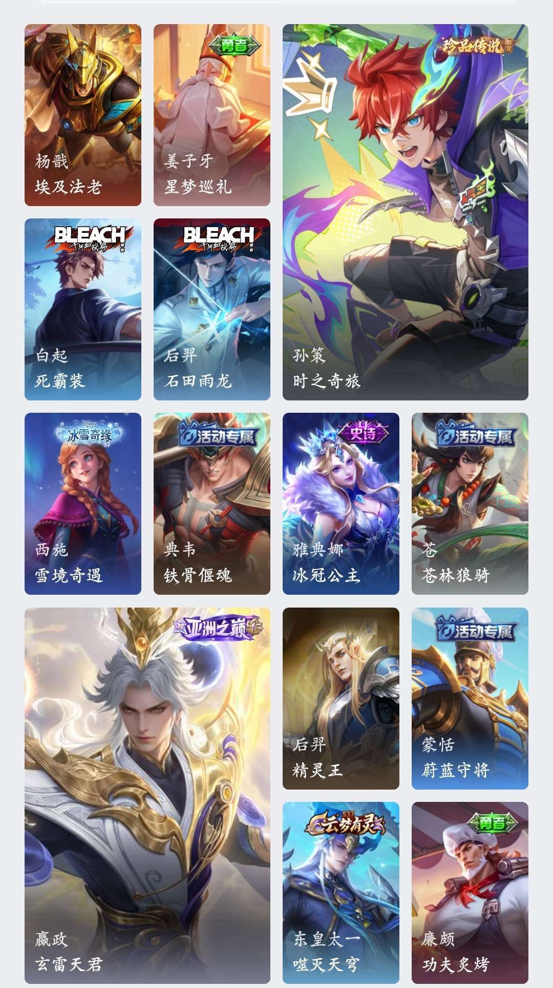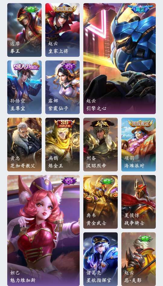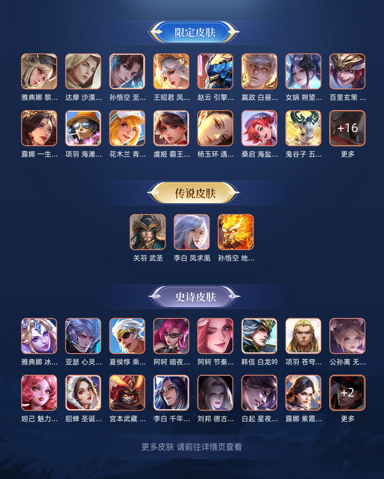 皮肤:李白凤求凰、王昭君凤凰于飞、孙策时之奇旅、嬴政 玄雷天君(见图片)段位:黄金Ⅳ