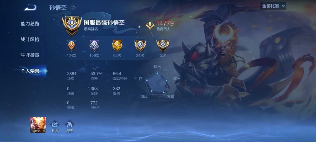 【V6 112皮】☀孙行者☀历史国服猴子国服铠☀打野42段☀可排位