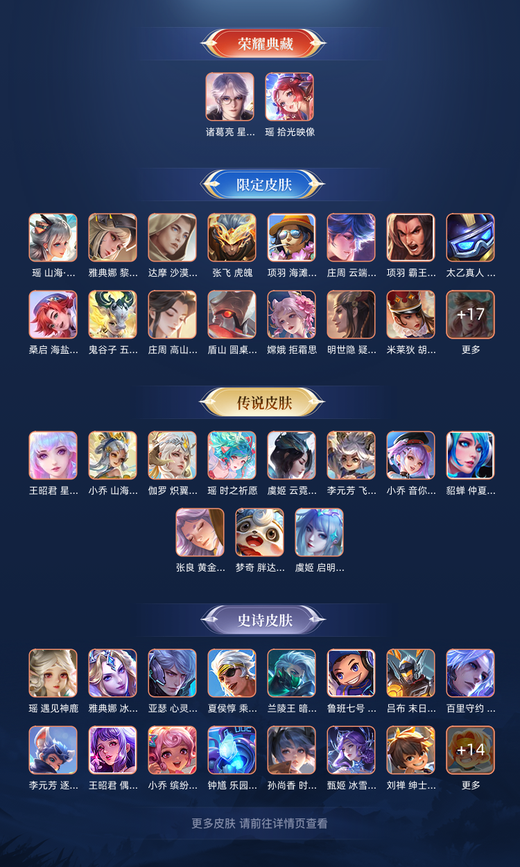 除了武则天满角色 皮肤不算特别多,好看的也不少,打野皮肤比较少,主玩打野的可以看看别的号,感谢 请游戏局内保持文明,防止禁言影响他人游戏,祝您玩得愉快!