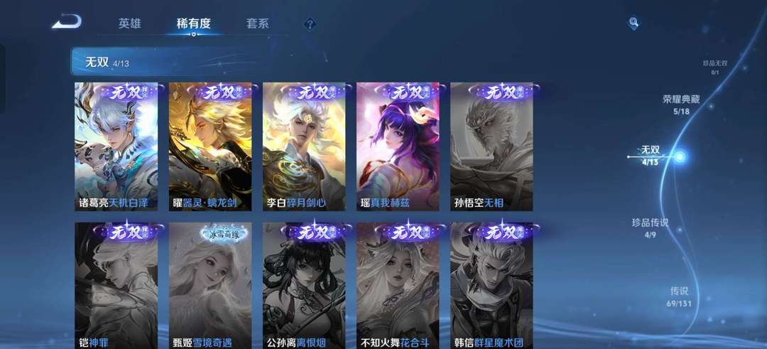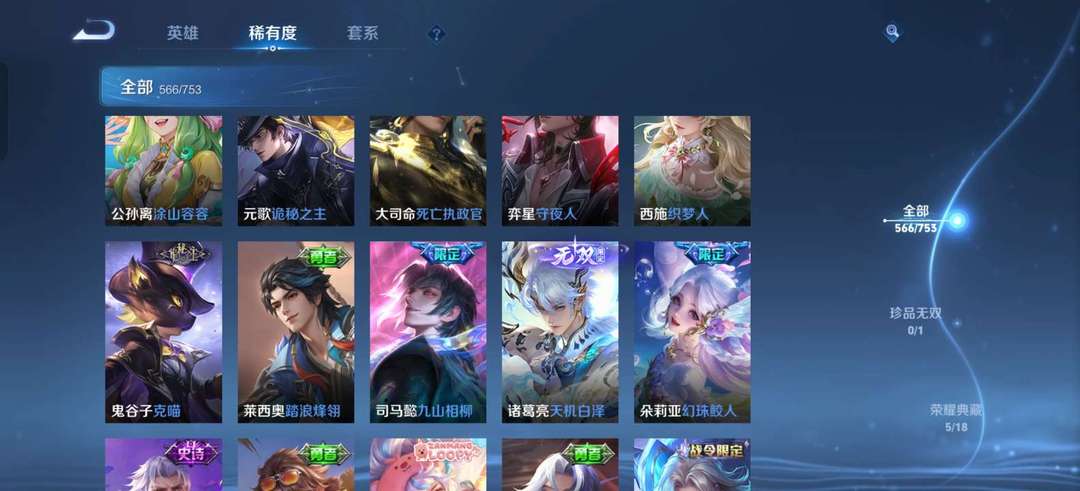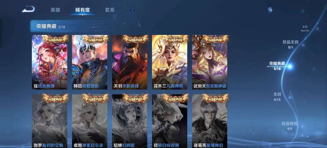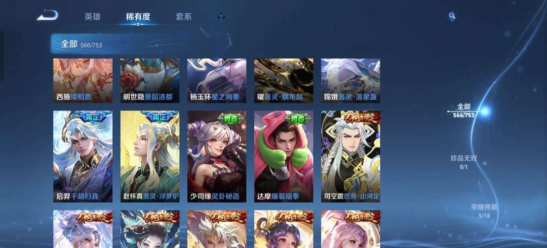 品质V10,5典藏566皮传说皮肤超多全英雄位置极其齐全蛇年限定4无双4珍品秒上号