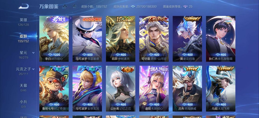 多款优质传说皮 李白无双皮肤 怪盗基德 武圣 无双飞将 多款史诗皮 包你玩到爽