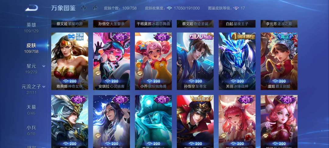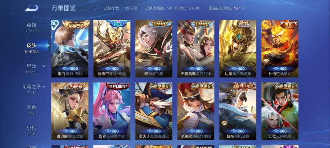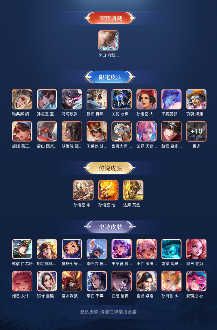 有至尊宝,李白的典藏,还有挺多皮肤的