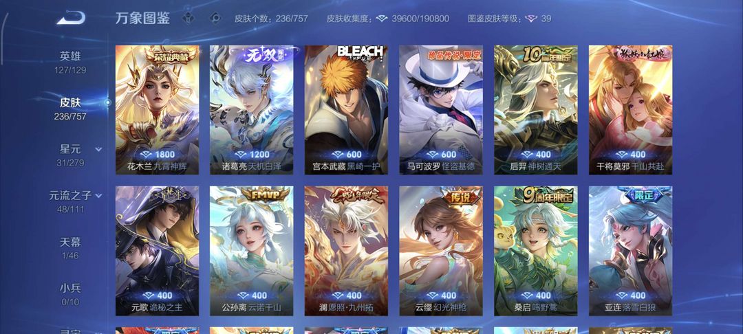 典藏九霄神辉❤️无双天机白泽❤️珍品黑崎一护❤️怪盗基德❤️段位钻石二❤️铭文全满
