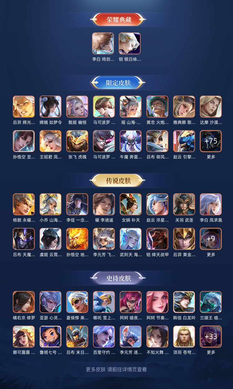 贵族等级V10,段位荣耀王者,英雄数量128,典藏皮肤数2,皮肤数量501,天魔缭乱/至尊宝/圣诞老人/梅西/白虎志/鸣剑·曳影/乘龙·问璇玑/时之奇旅(大乔)/无双飞将/李逍遥/霜北刀/逐花归海/琥珀纪元(马超)/至美·乘鲤谣/曦玄引(貂蝉)/碎月剑心/霜月吟/乘龙·淬吴钩/东方月初/乘龙·铭钟鼎/夜礼服假面/补天/乘龙·聚宝船/祥瑞亨通/黑崎一护/炽阳神光/乘龙·忆丹青/神树通天/朽木白哉/云诺千山/银白咏叹调/时之魔女/雪豹·霜爪/天魔缭乱/至尊宝/圣诞老人/梅西/白虎志/鸣剑·曳影/乘龙·问璇玑/时之奇旅(大乔)/无双飞将/李逍遥/霜北刀/逐花归海/琥珀纪元(马超)/至美·乘鲤谣/曦玄引(貂蝉)/碎月剑心/霜月吟/乘龙·淬吴钩/东方月初/乘龙·铭钟鼎/夜礼服假面/补天/乘龙·聚宝船/祥瑞亨通/黑崎一护/炽阳神光/乘龙·忆丹青/神树通天/朽木白哉/云诺千山/银白咏叹调/时之魔女/雪豹·霜爪
