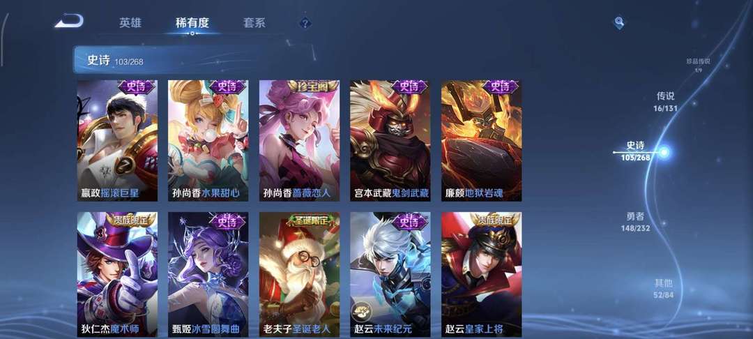 三典藏,鸣剑曳影,九霄神辉,弑枪猎影,关羽冰封战神,武圣,马超全皮,白虎志,李逍遥,圣诞老人,等等