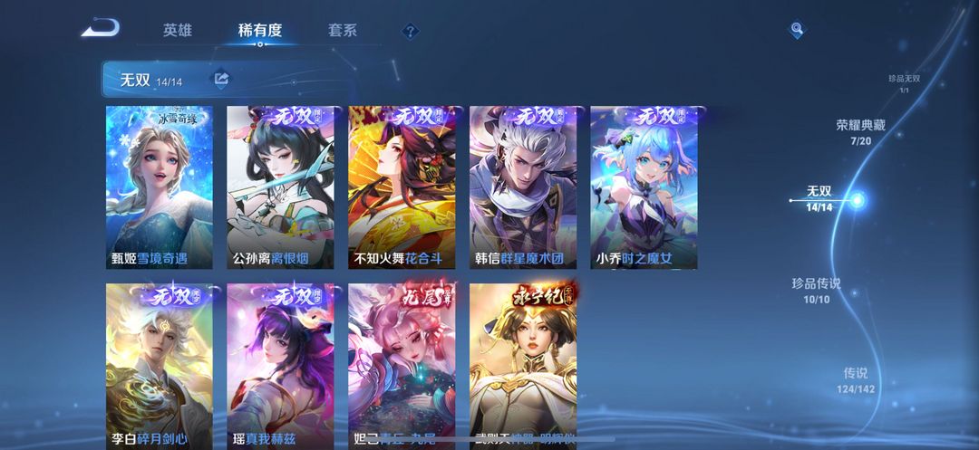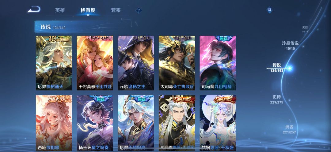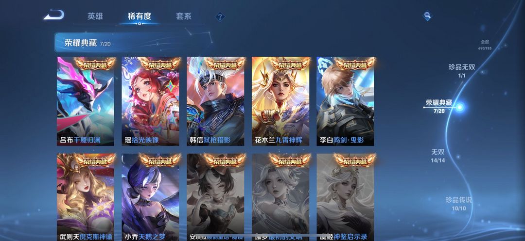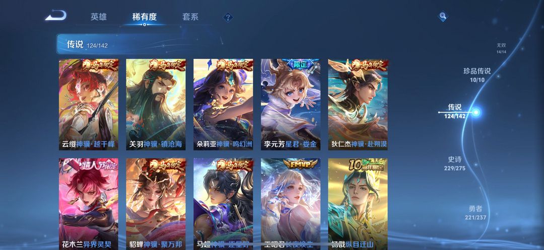 马年限定已买✨荣耀贵族V10✨典藏7珍品无双1✨无双14珍品传说10✨星传说皮7✨传说124