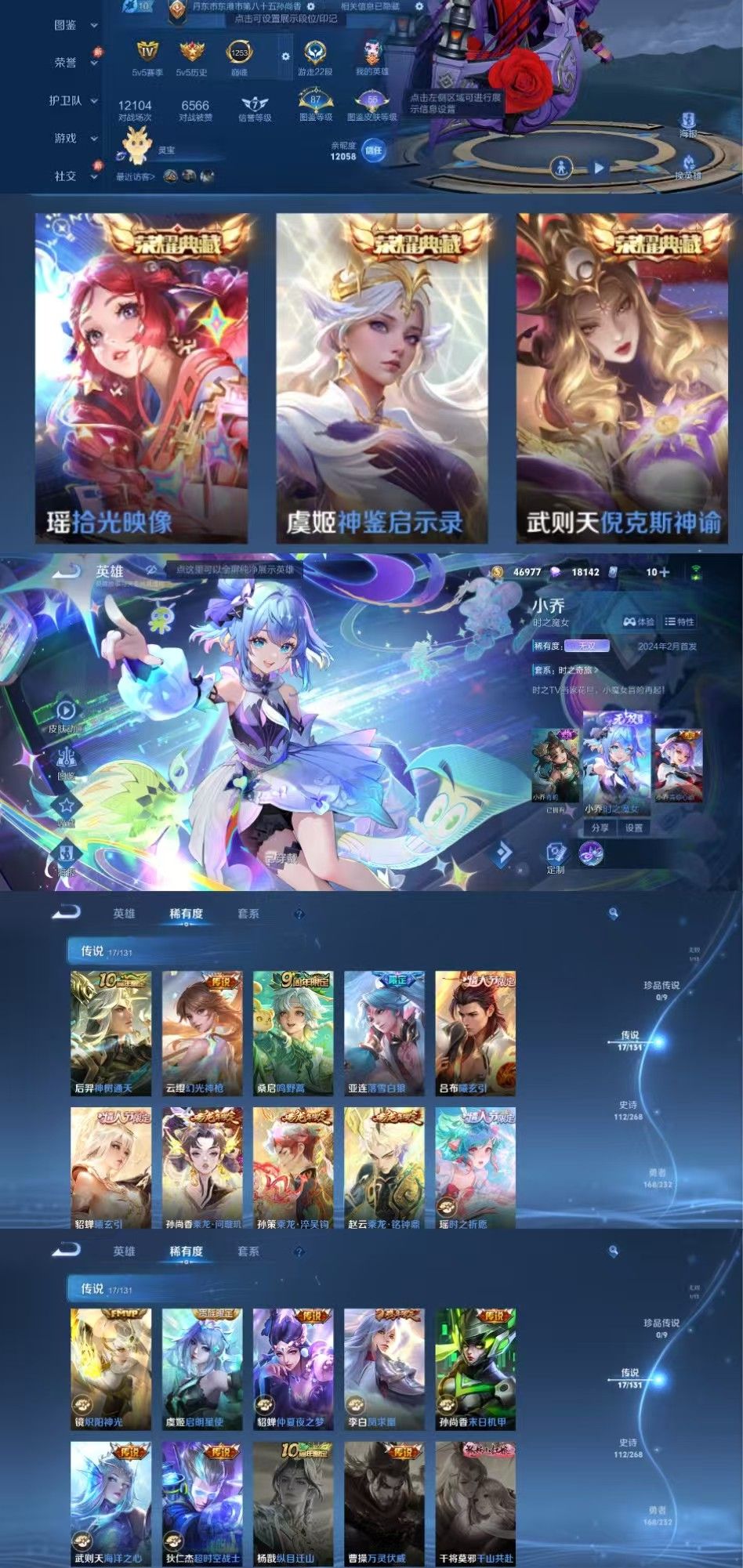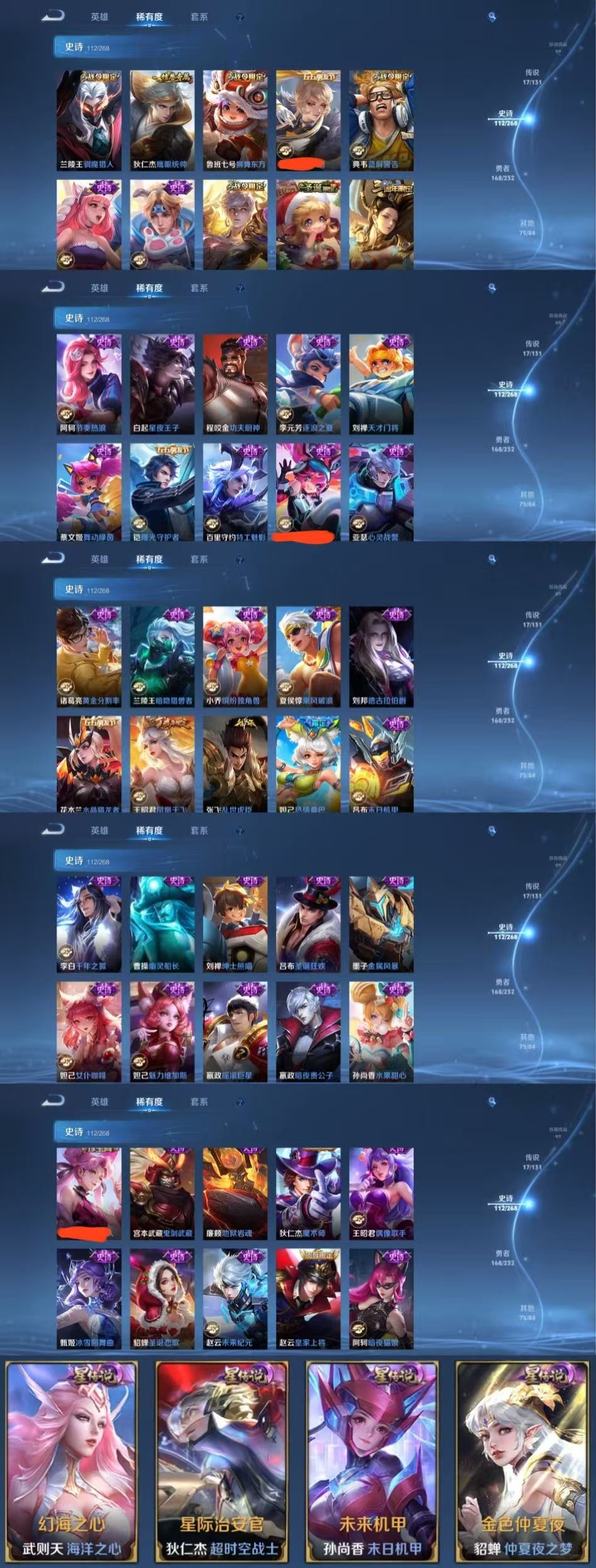 时间到了还登录白玩或者顶号全部改密拉黑处理永不解除,顶号机器会秒禁玩改密,顶号不仅拉黑还没得玩,赚三两块不容易,请理解谢谢。 ❤❤❤❤❤❤❤❤❤❤❤❤❤❤❤❤❤❤❤ 请勿开挂,挂机,送头,骂人,撤单后游戏等如有违规永久拉黑永不解除。 重置二级密码不要费劲了,号主每天都会上号查看,多行不义必自毙,人在做天在看,多做好事多自律,少做缺德事。 该号英雄129个皮肤376个,典藏4个,无双1个,星传说4个,传说17个,史诗112个,祝您游戏愉快~