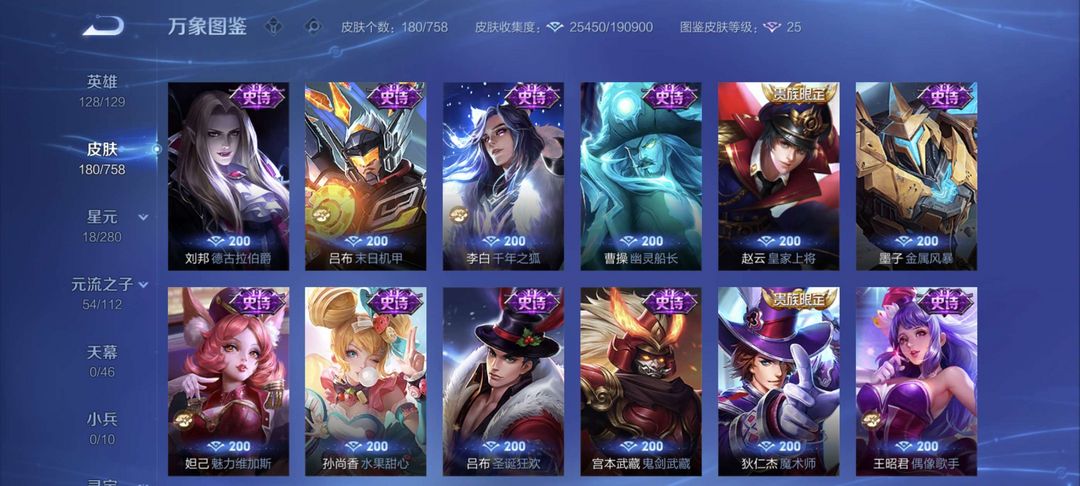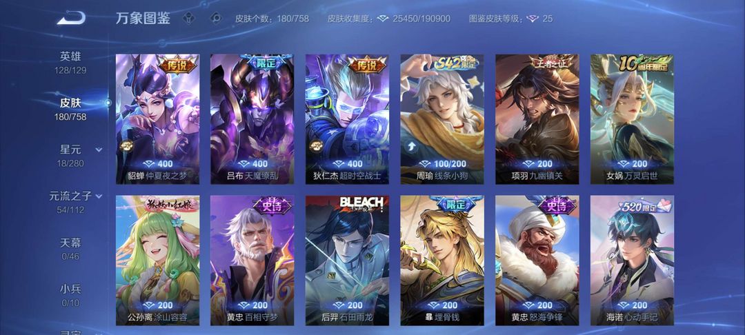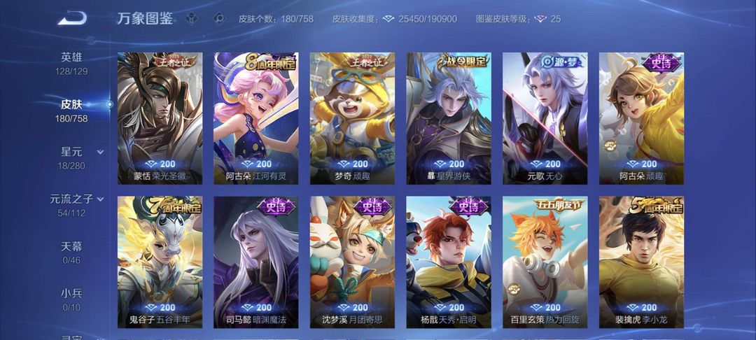 朽木白哉⭐永曜之星⭐天魔缭乱⭐炽霜斩⭐深海之息⭐九山相柳除了武则天其他英雄全有,主流铭文全部满级
