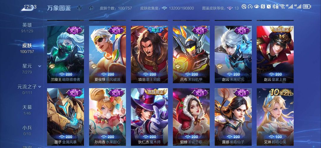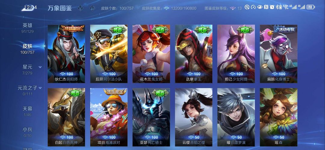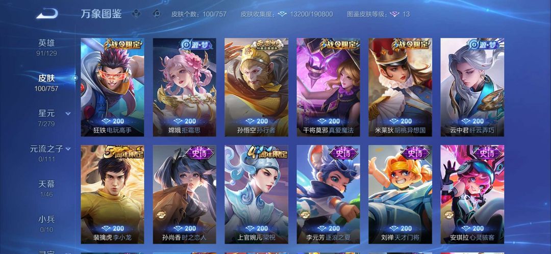 V7❤️浮生妄❤️神树❤️霸王项羽❤️孙行者❤️紫霞仙子❤️腾王阁序优质皮肤 段位低可爽炸鱼