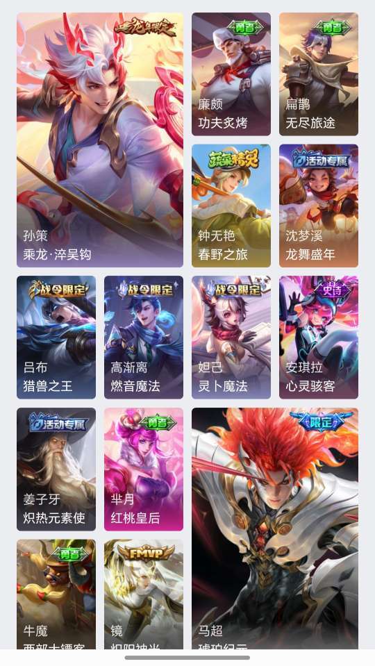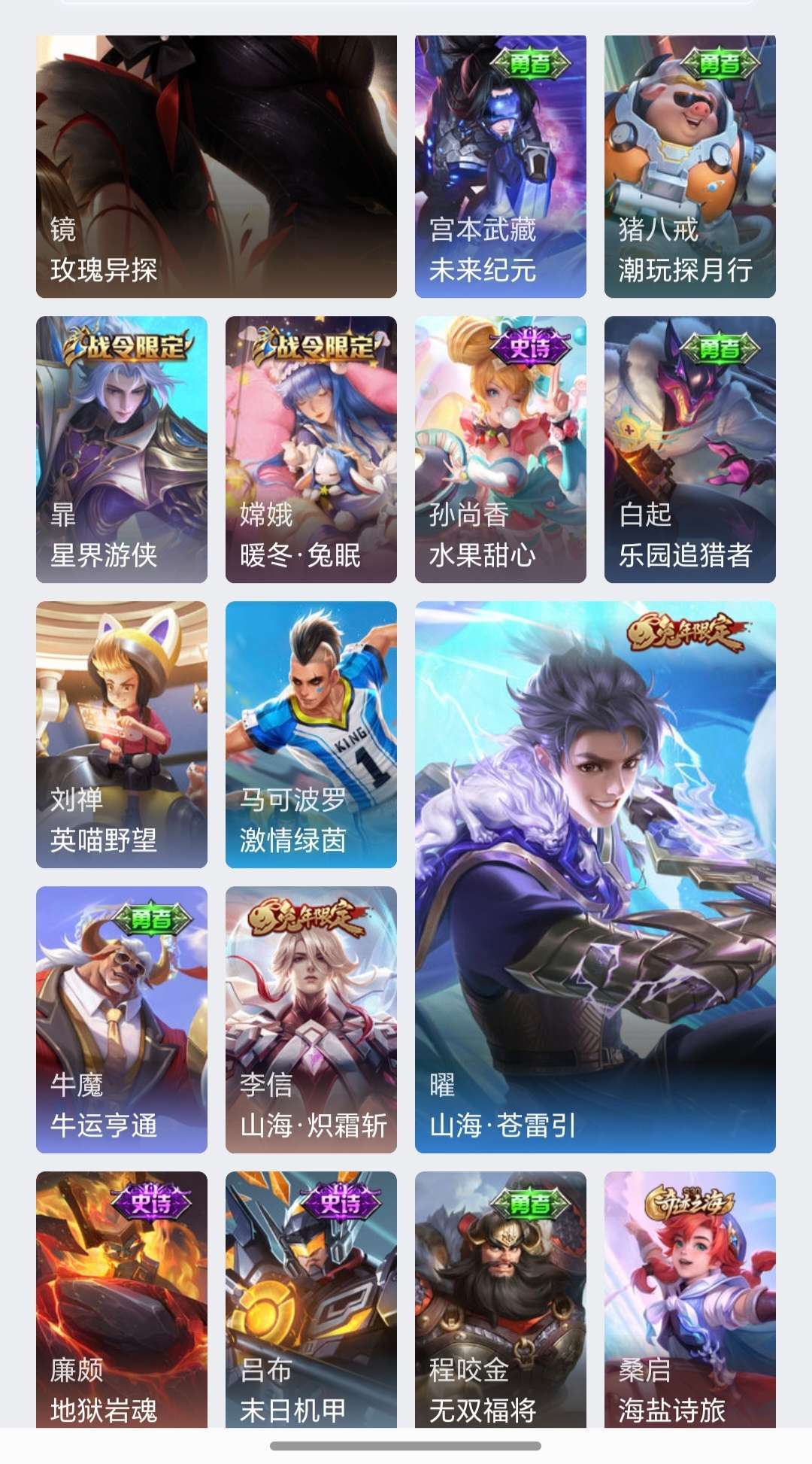 澜全皮 花木兰荣耀典藏 马超琥珀纪元 FMVP 孙悟空齐天大圣 孙行者v8 302皮肤任玩(禁毁号)