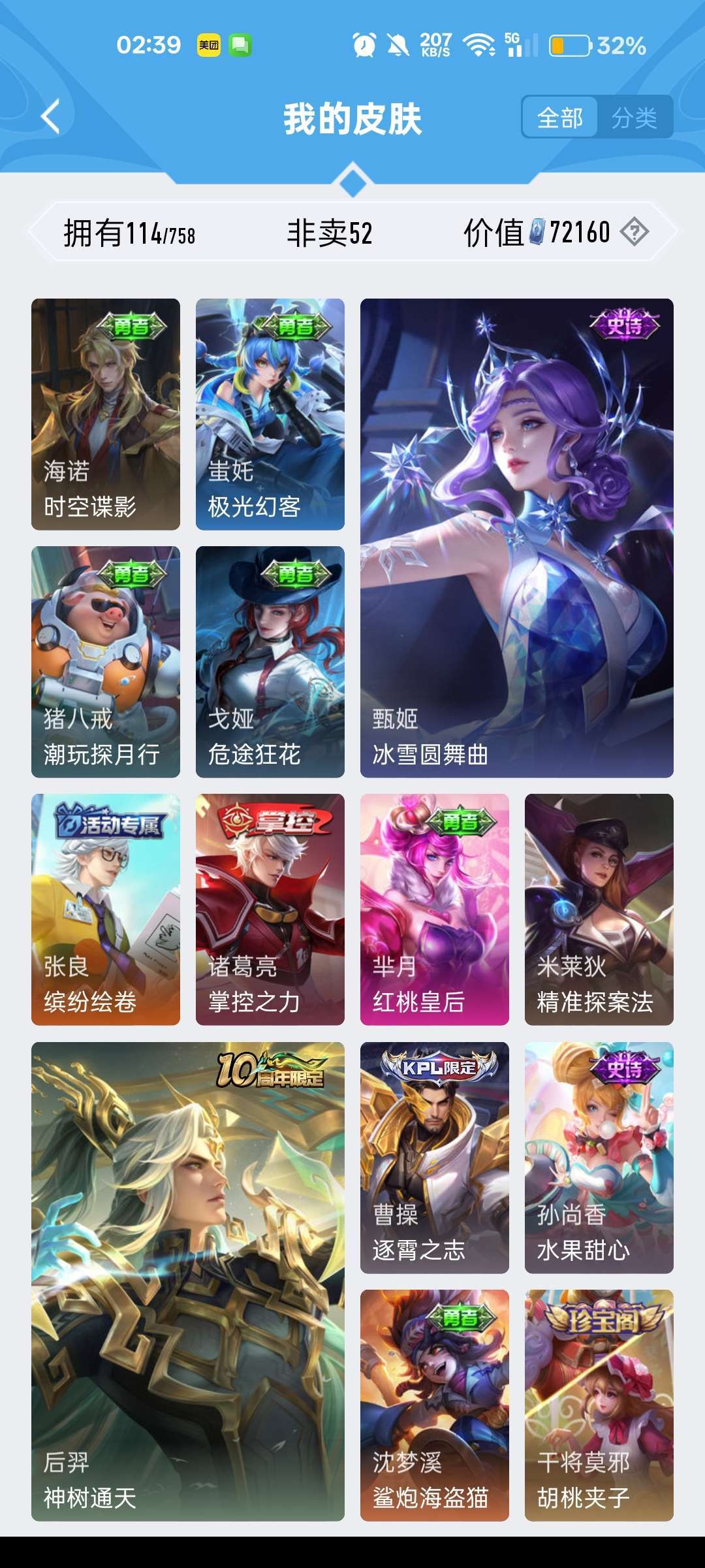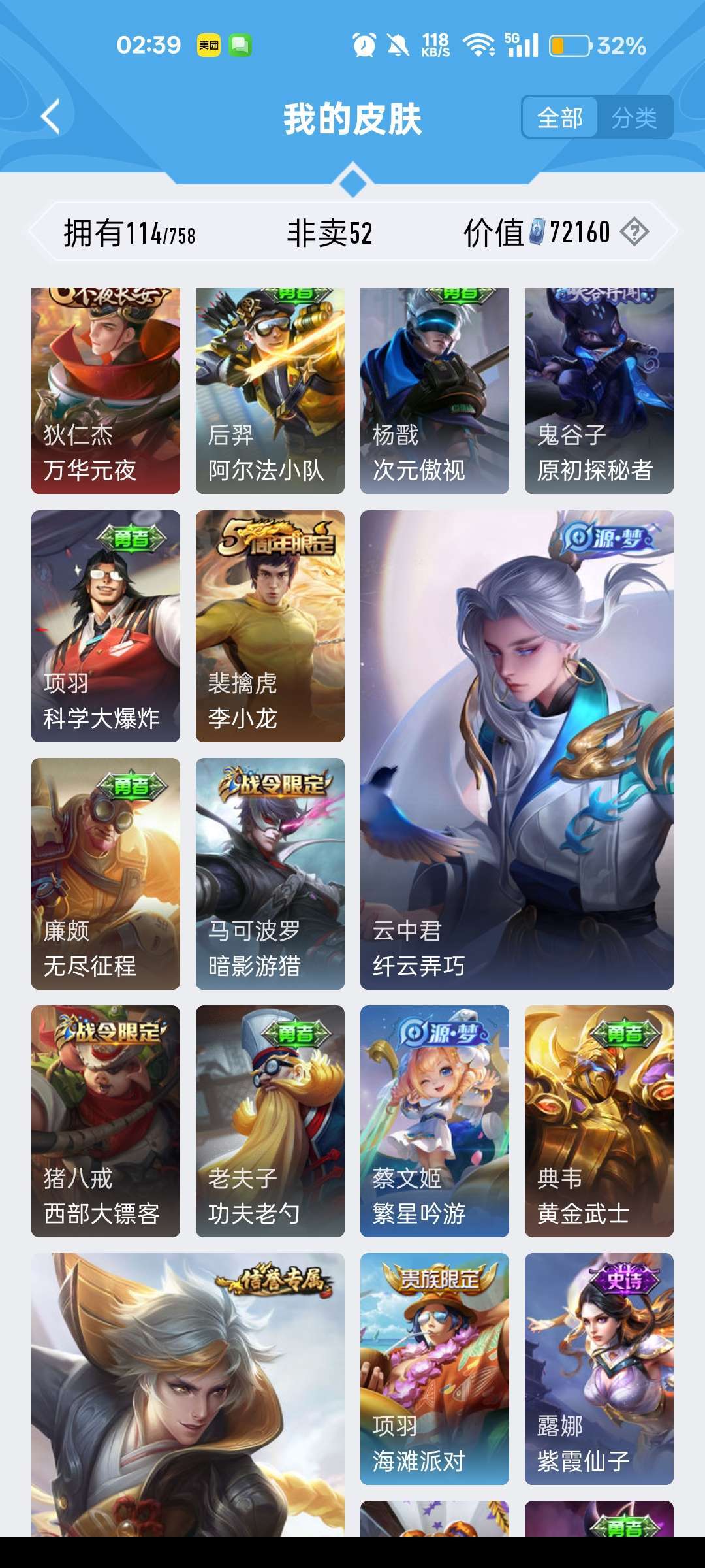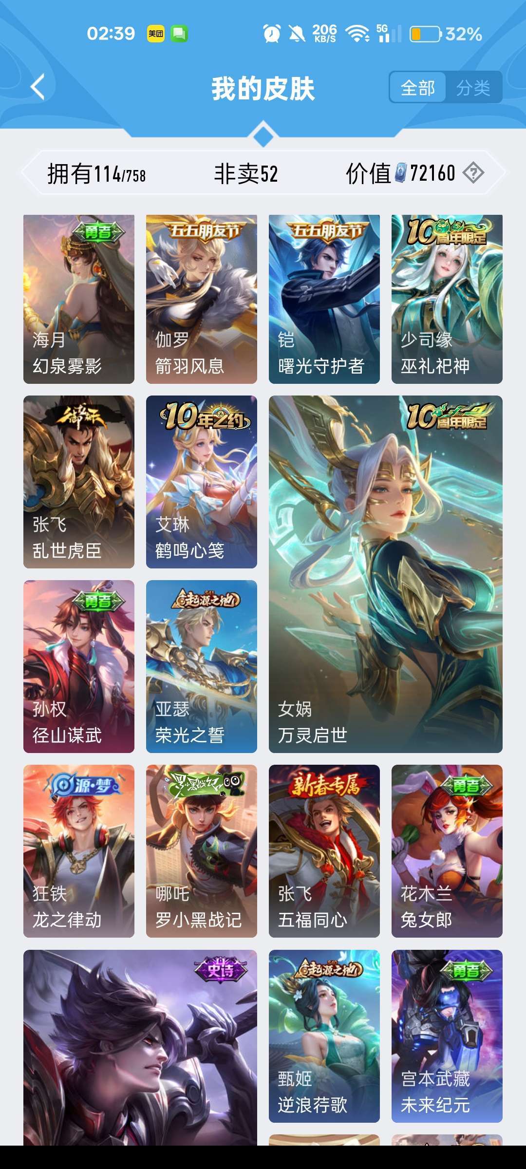 有露娜的紫霞仙子,还有后羿限定皮肤,有韩信的街头霸王