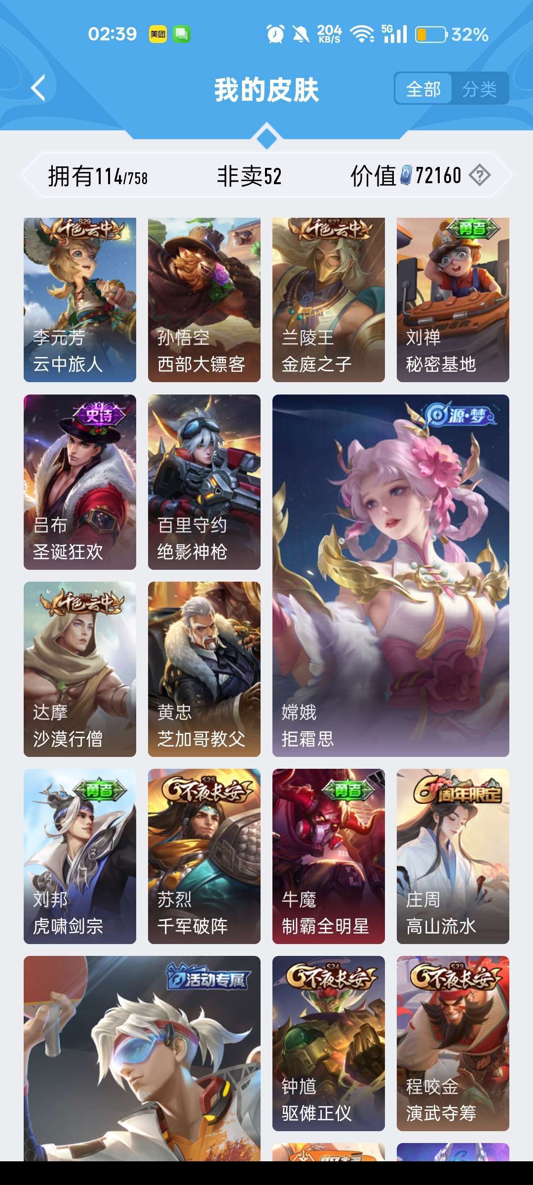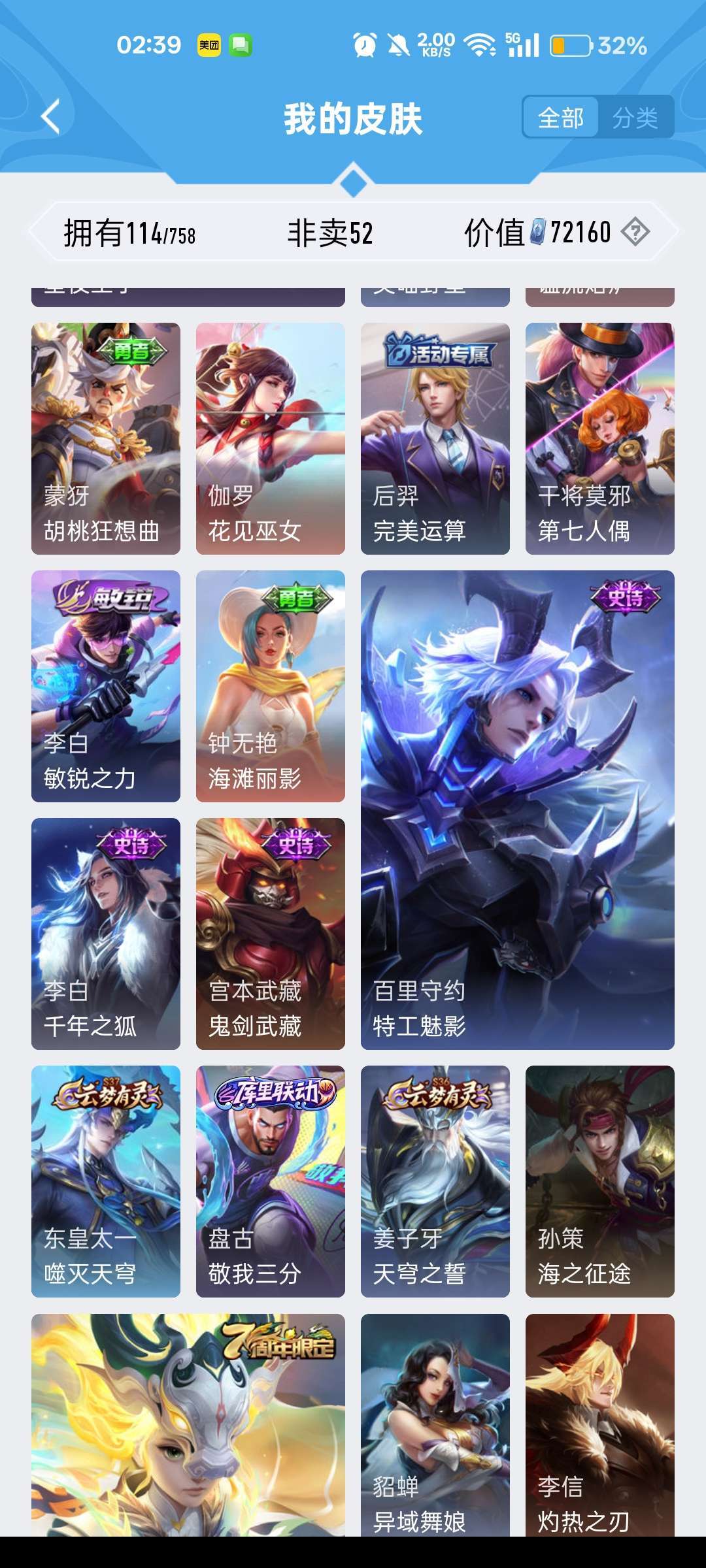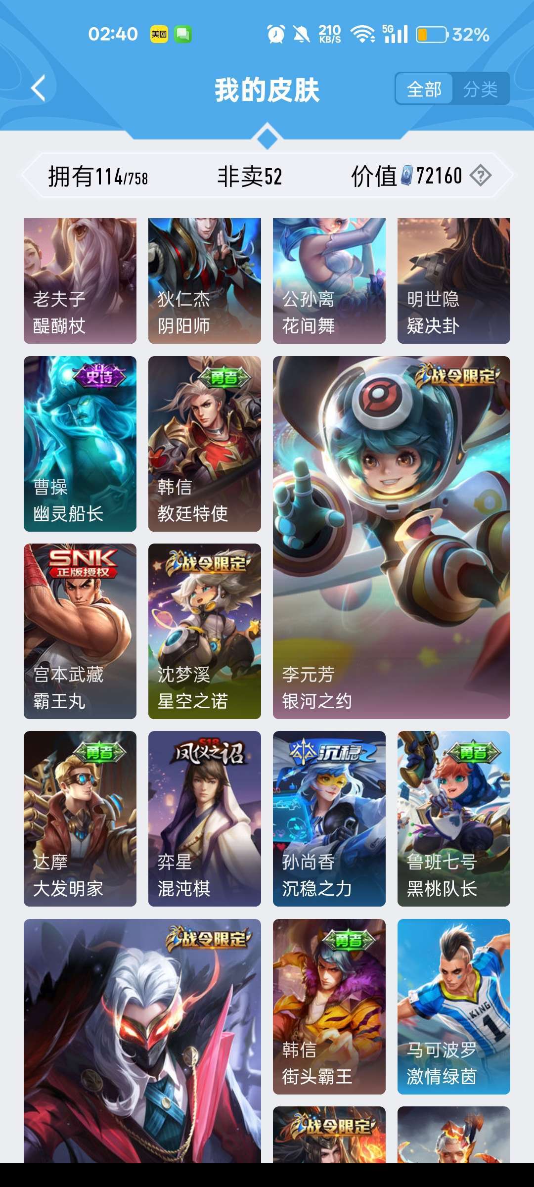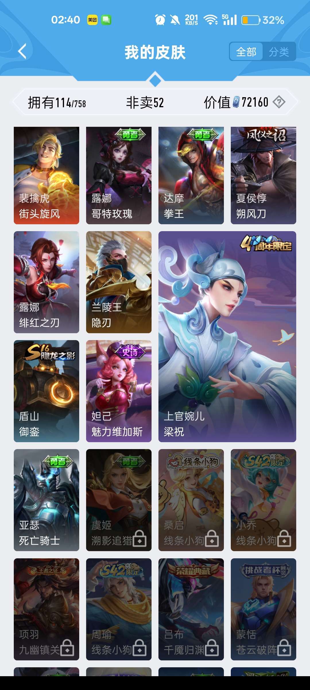 有露娜的紫霞仙子,还有后羿限定皮肤,有韩信的街头霸王