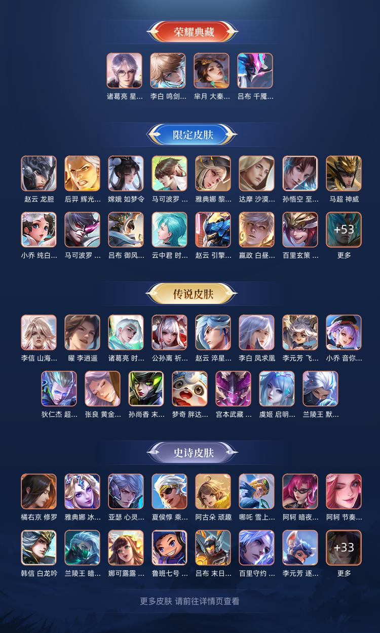 4典藏2珍品33传说✨国服云缨国服梦琪✨国服盘古万战嫦娥✨千魇归渊全十周年✨落星盏怪盗基德✨全龙年