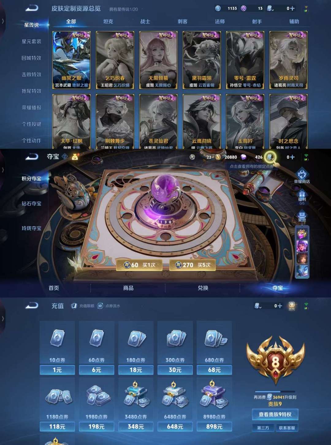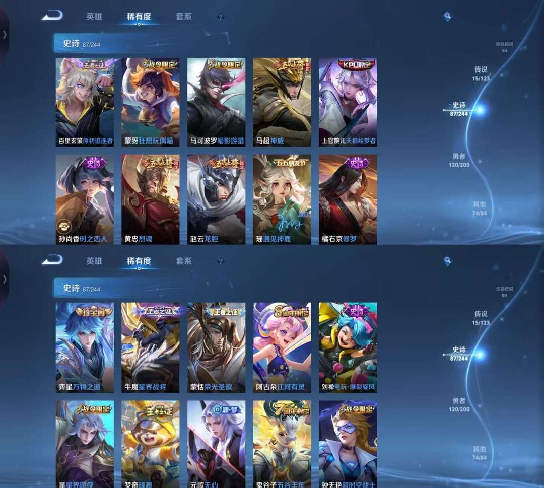 打野42段!V8--297皮肤1内测 蔷薇恋人 1星元 幽冥之眼 --1水晶(已兑换) 九霄神辉 凤求凰 神威 至尊宝 启明星使 时雨天司 御风骁将 山海炽霜斩 飞衡 龙胆 烈魂 枫霜尽 天狼绘梦者 后羿如梦令 默契交锋女 大圣娶亲 辉光之辰 星穹之声 乒乒小将 猪悟能 神迹守卫 狮舞东方 星空之诺 银河之约 冰冠公主 无双飞将 暗影游猎 原初追逐者 黎明之约 美猴王 梁祝 狂想玩偶喵 云间偶戏 地狱火 苍穹之光 电玩小子 未来纪元赵云 炽阳神光 云鹰飞将 一念神魔 黄金狮子座 黄金射手座 地狱之眼 电玩爆裂旋风 遇见神鹿 原初探秘者 李小龙 水晶猎龙者 暗隐猎兽者 金属风暴 特工魅影 曙光守护者 黄金分割率 舞动绿茵 逐浪之夏 心灵战警 修罗 千年之狐 紫霞仙子 功夫厨神
