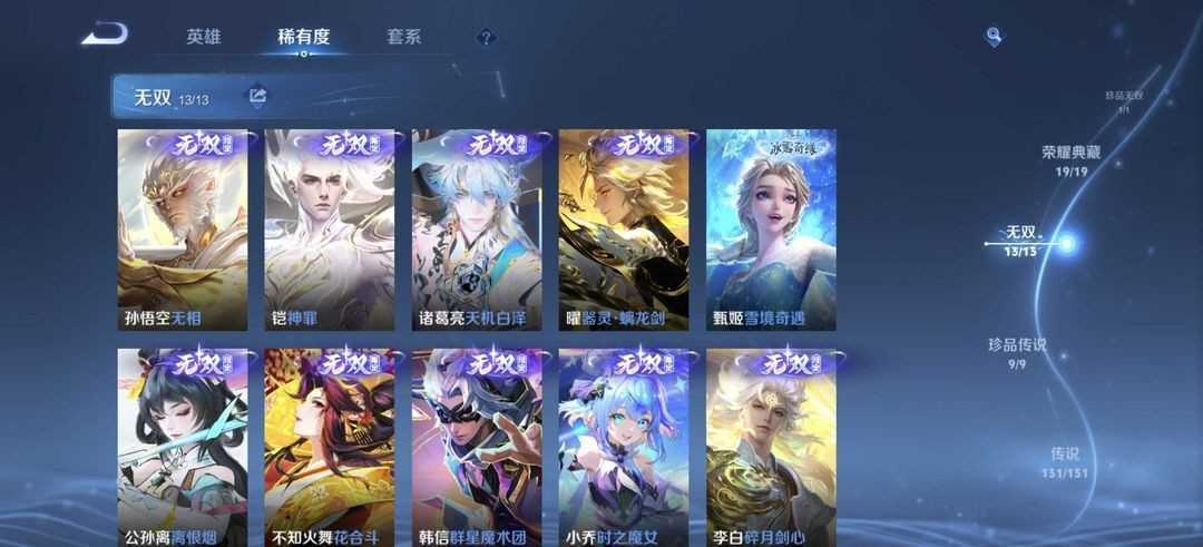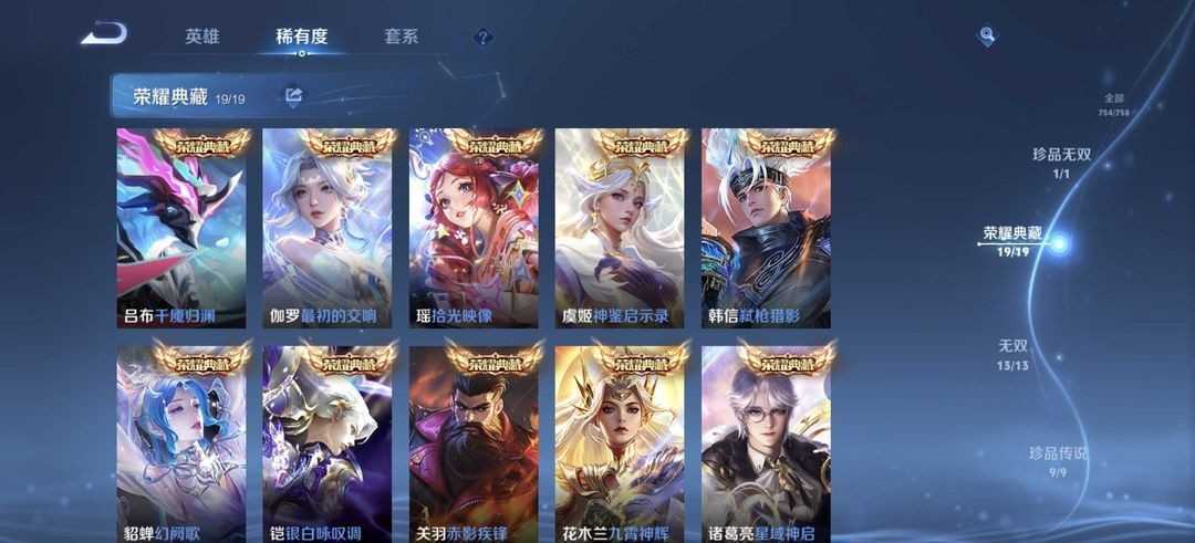 754皮⭐️满典藏⭐️满珍品⭐️满传说⭐️满无双⭐️三小兵皮肤1⭐️15星传说