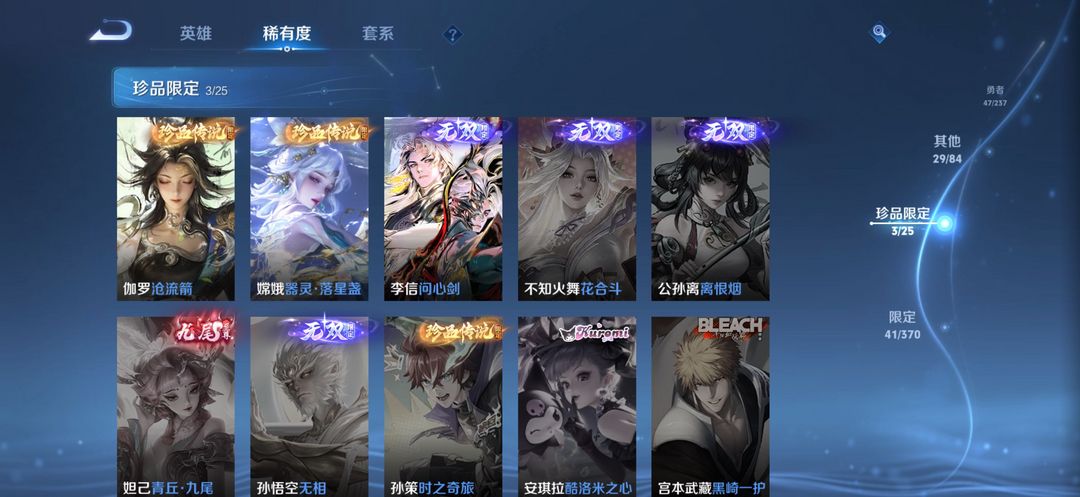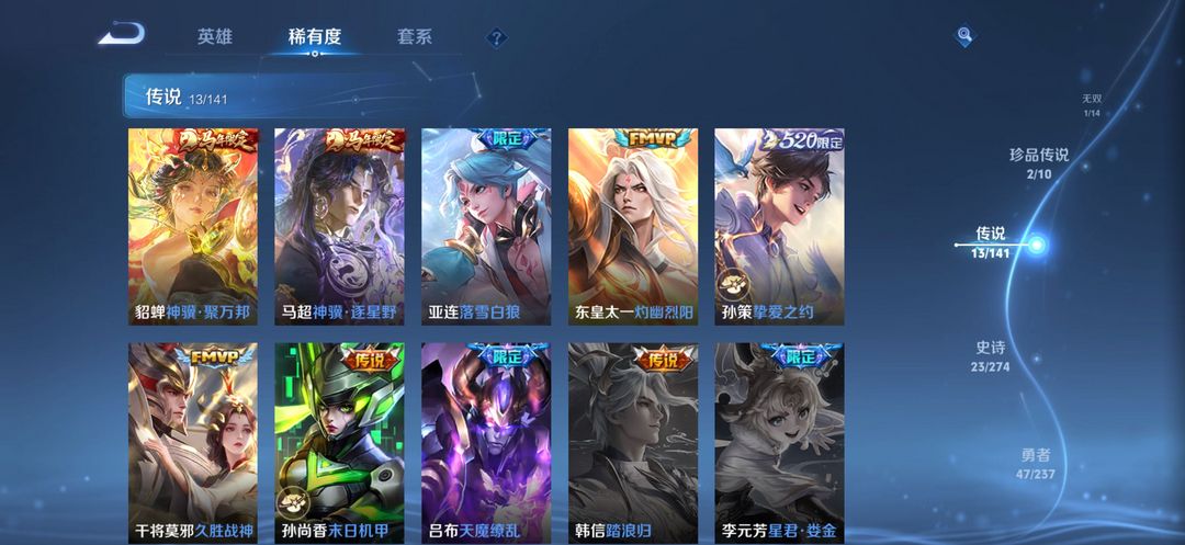 问心剑/仓流箭/嫦娥珍品传说/吕布天魔/马年所有年限以及10多款传说皮,