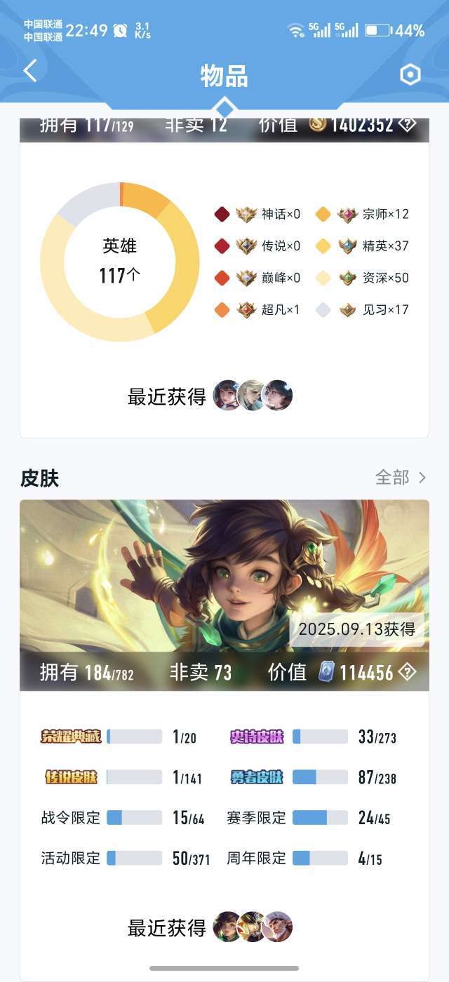 V7超多稀有皮肤,英雄,荣耀典藏夏侯惇,娱乐匹配都可以